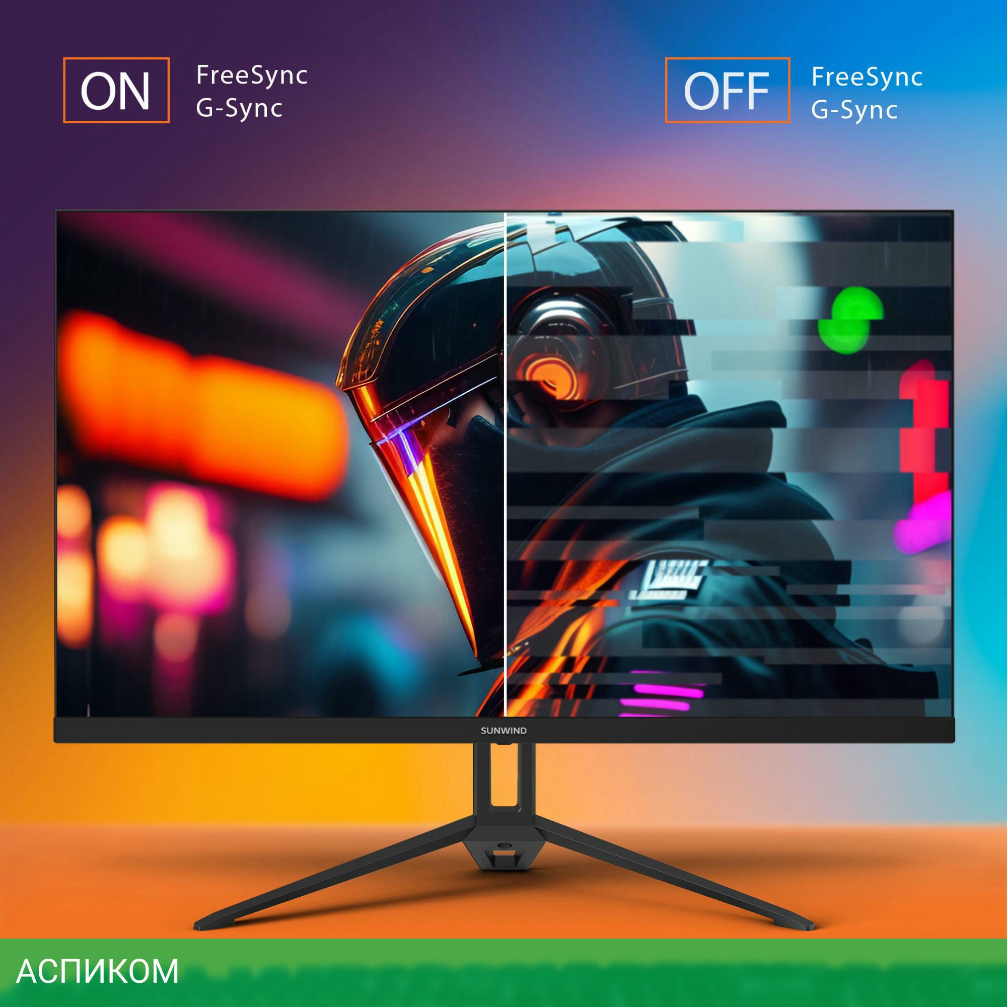 Монитор SunWind SUN-M27BA107 черный/IPS/27″/16:9/1920x1080/165Hz/матовый/178гр/178гр/3ms/DisplayPort/HDMI/AMD FreeSync/300cd/черный