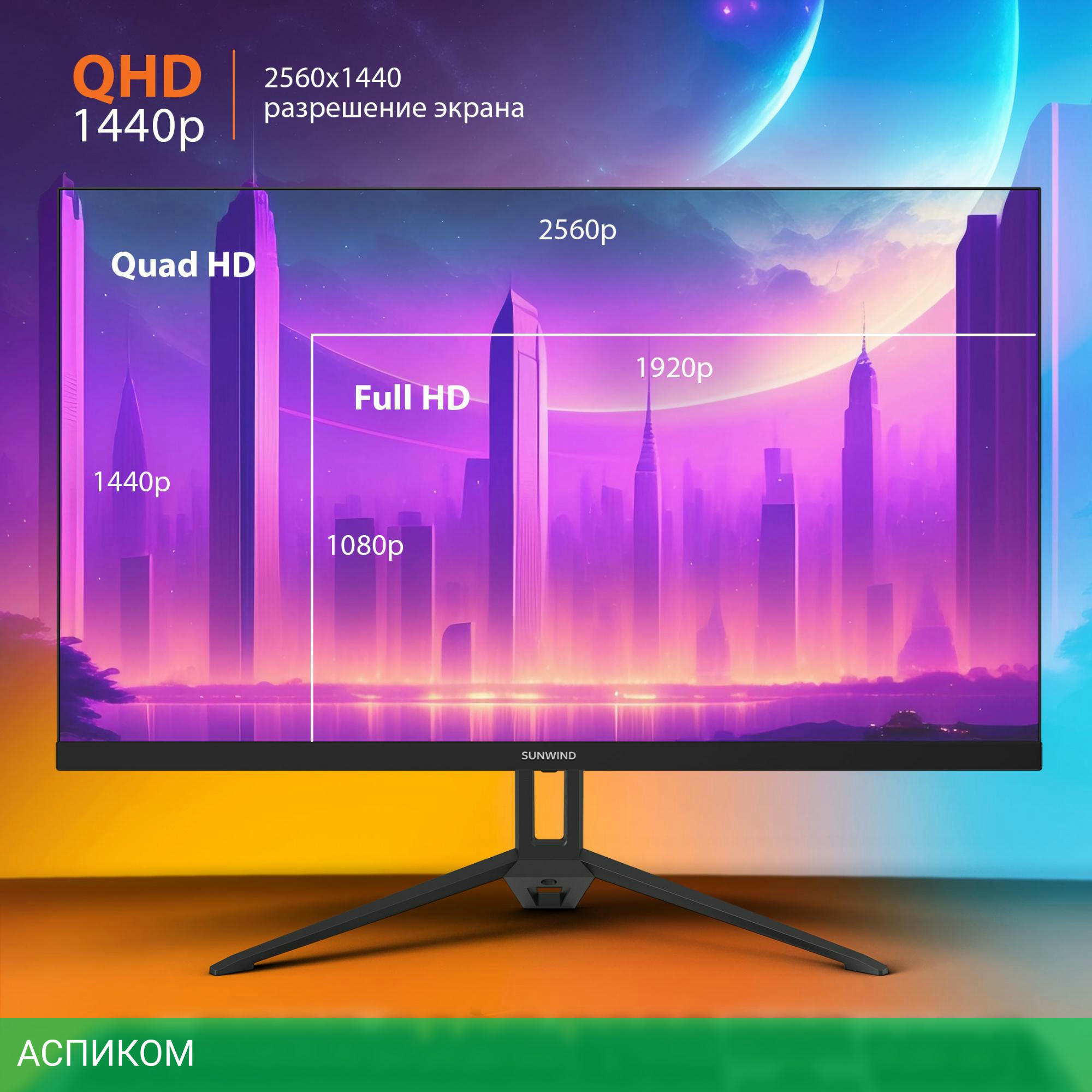 Монитор SunWind SUN-M27BA108 черный/IPS/27″/16:9/2560x1440/144Hz/матовый/178гр/178гр/3ms/DisplayPort/HDMI/AMD FreeSync/280cd/черный