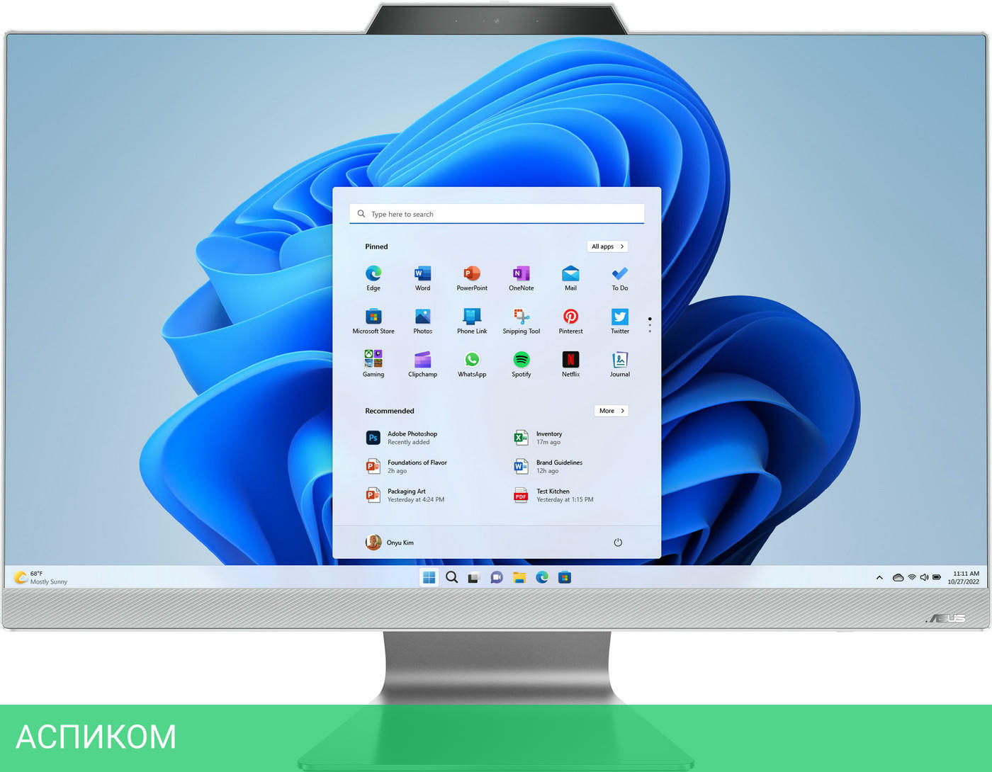 Моноблок Asus F3702WFA-WPE0030 белый (90PT03M1-M00D10)/27″/IPS/1920x1080/250N/AMD Ryzen 3 7320U/8ГБ/SSD 512 ГБ/UMA/DOS/GbitEth/Wi-Fi/BT/CAM/White