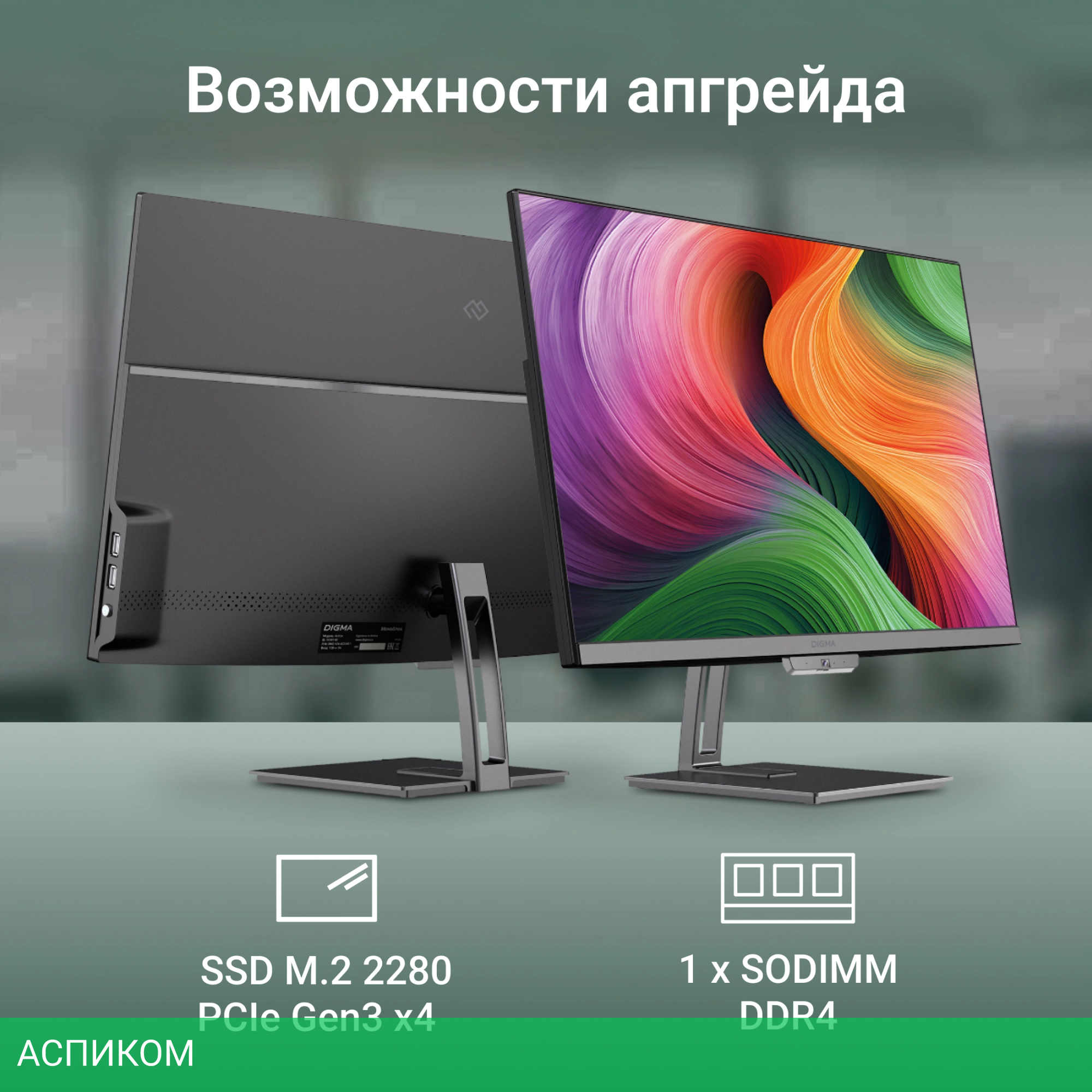 Моноблок Digma Action черный (DM21N9-8CXW01)/21.5″/VA/1920x1080/220N/Intel N95/16ГБ/SSD 256 ГБ/UMA/Windows 11 Pro/GbitEth/Wi-Fi/BT/CAM/Black/кл+м