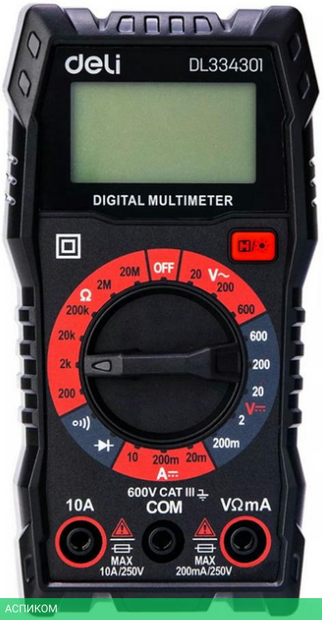мультиметр / сопротивление; постоянный ток; постоянное напряжение; переменное напряжение / ручное / 600.0 / 600.0 / 10.0 / 20.0 / да / да / да
