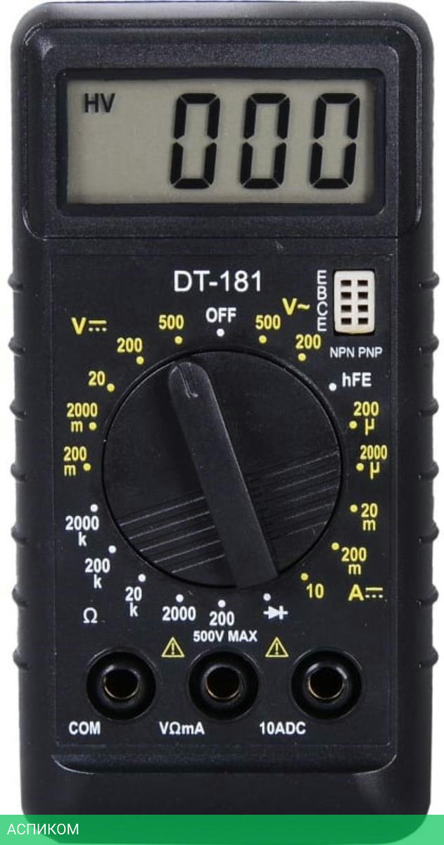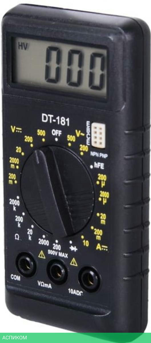 мультиметр / сопротивление; постоянный ток; постоянное напряжение; переменное напряжение; коэффициент усиления / ручное / 500.0 / 500.0 / 10.0 / 2.0 / да / да / нет