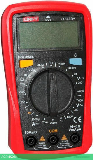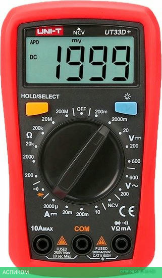 мультиметр / переменное напряжение; постоянное напряжение; постоянный ток; сопротивление / ручное / 10.0 / 200.0 / да / да / нет
