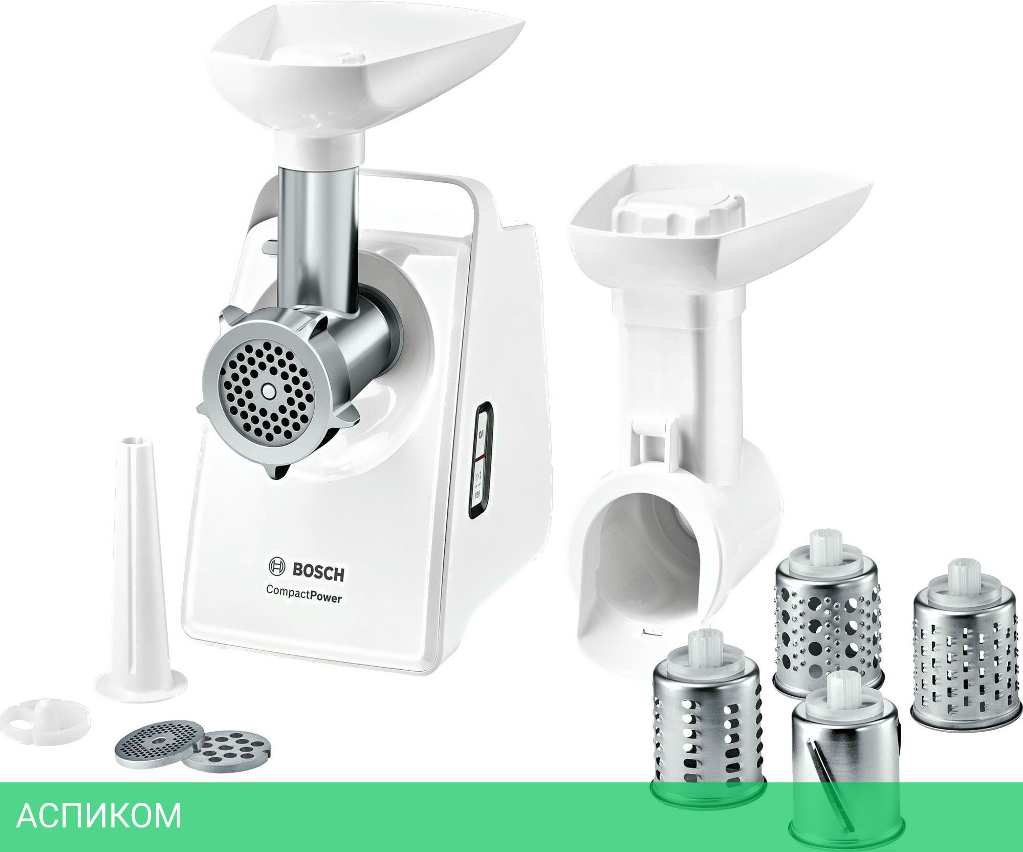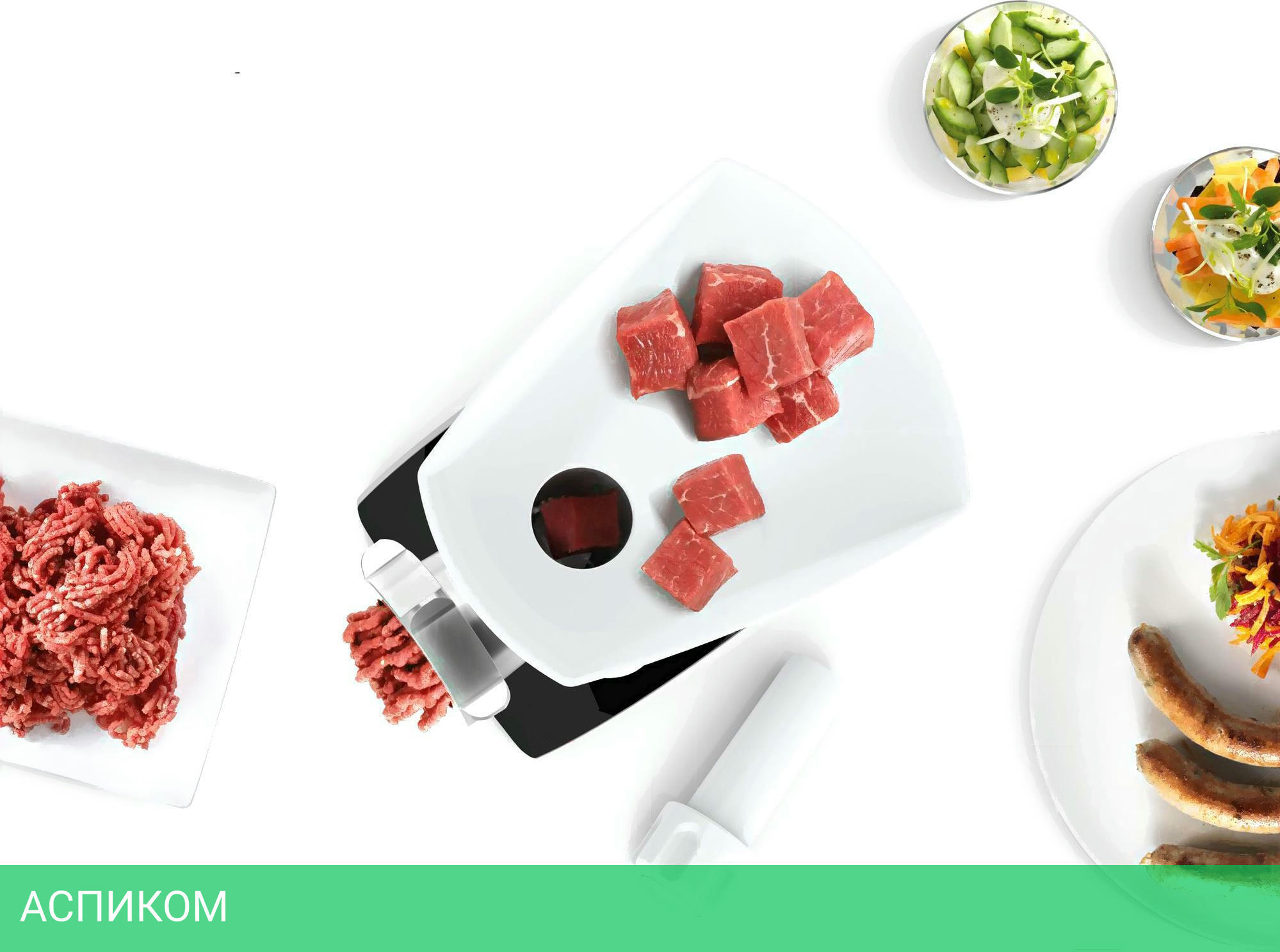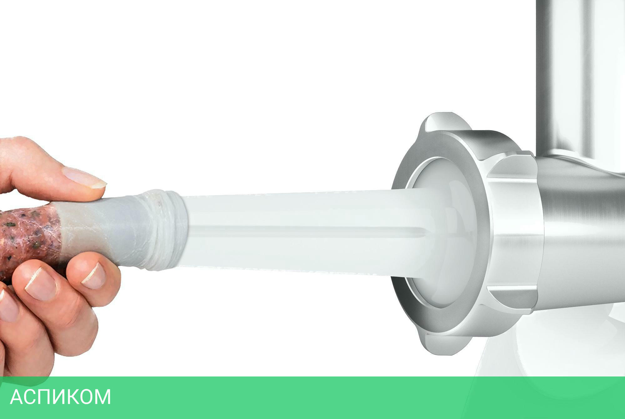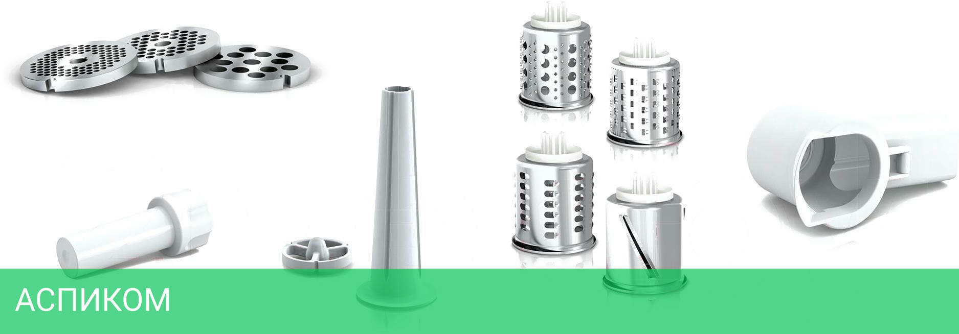насадка-овощерезка, насадка-терка (2 шт.), насадка-шинковка, насадка для колбасы, перфорированный диск, толкатель (2 шт.)