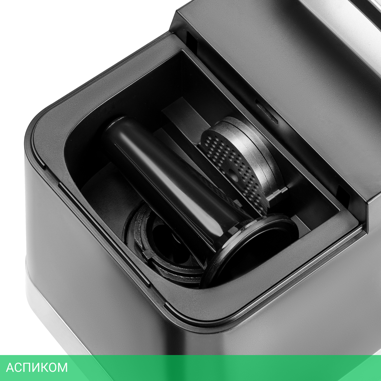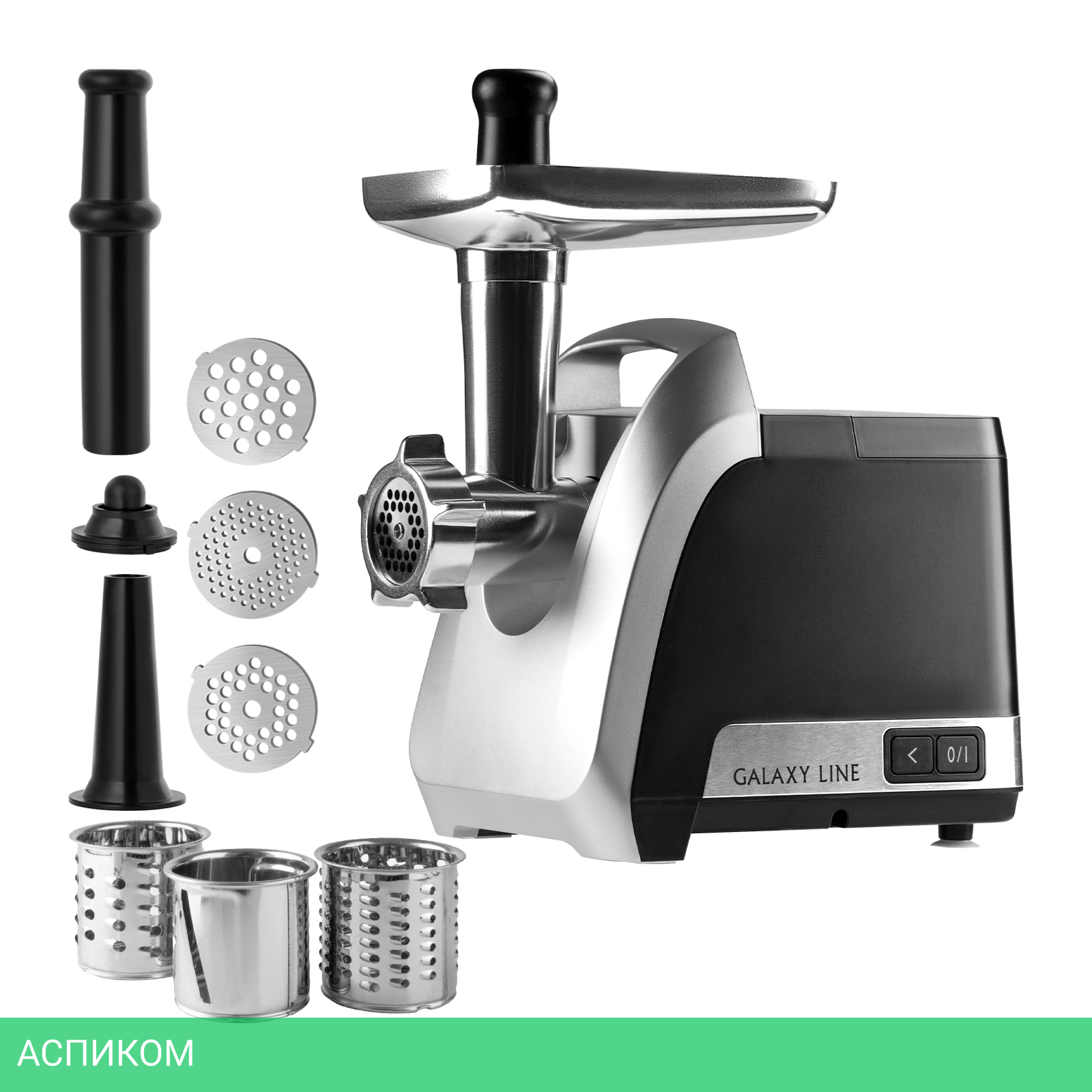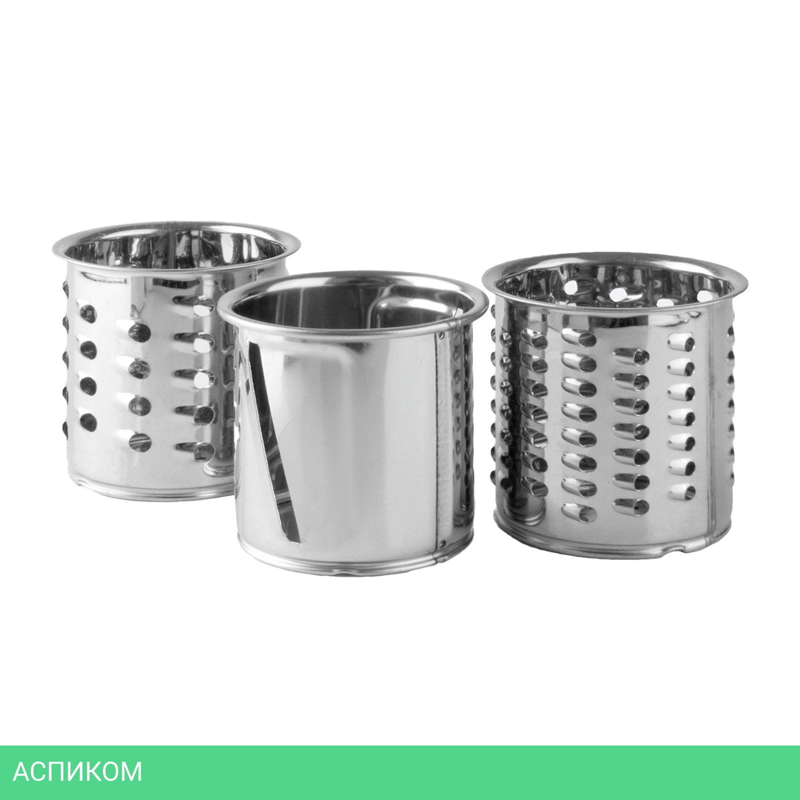диск для мелкой нарезки 1 шт., диск для средней нарезки 1 шт., диск для крупной нарезки 1 шт., шнек 1 шт., насадка для изготовления сосисок 1 шт., насадка для изготовления «кеббе» 1 шт., насадка для крупной шинковки 1 шт., насадка для мелкой шинковки 1 шт., насадка для нарезки 1 шт.