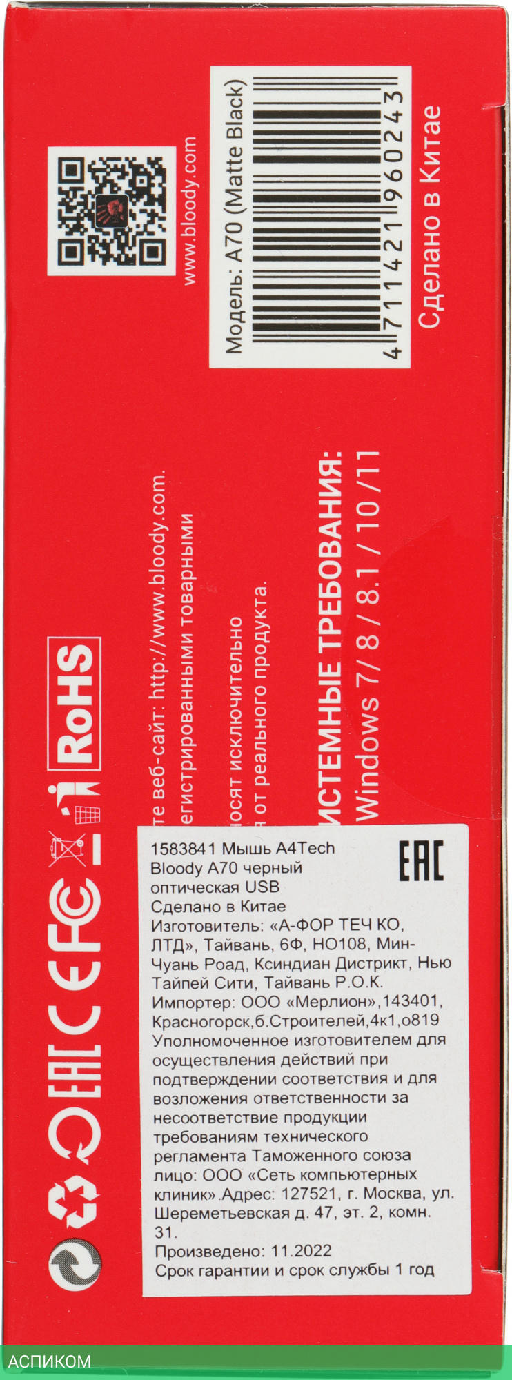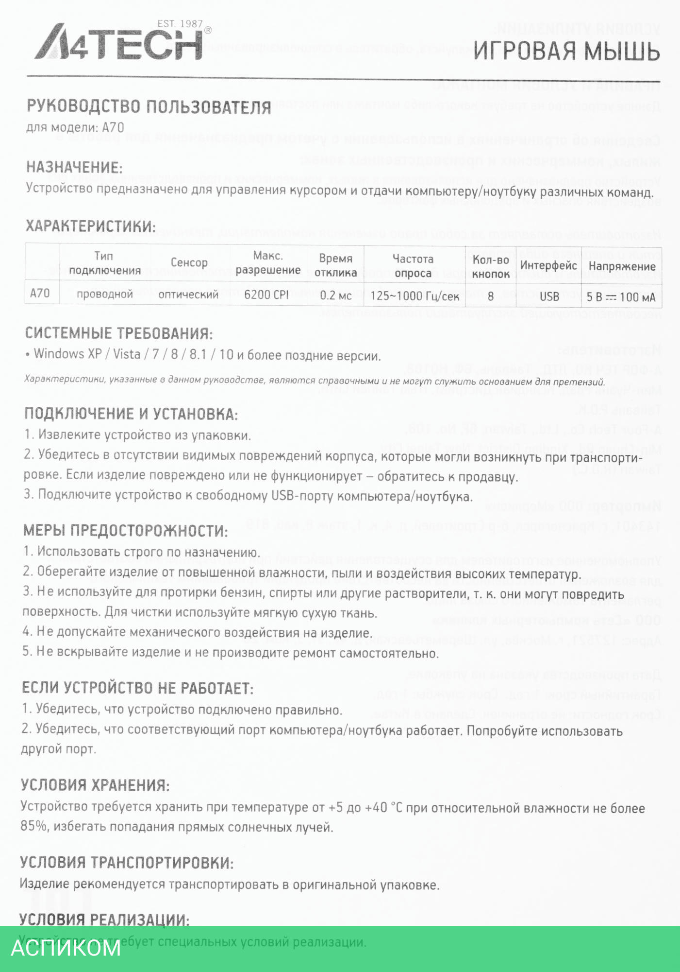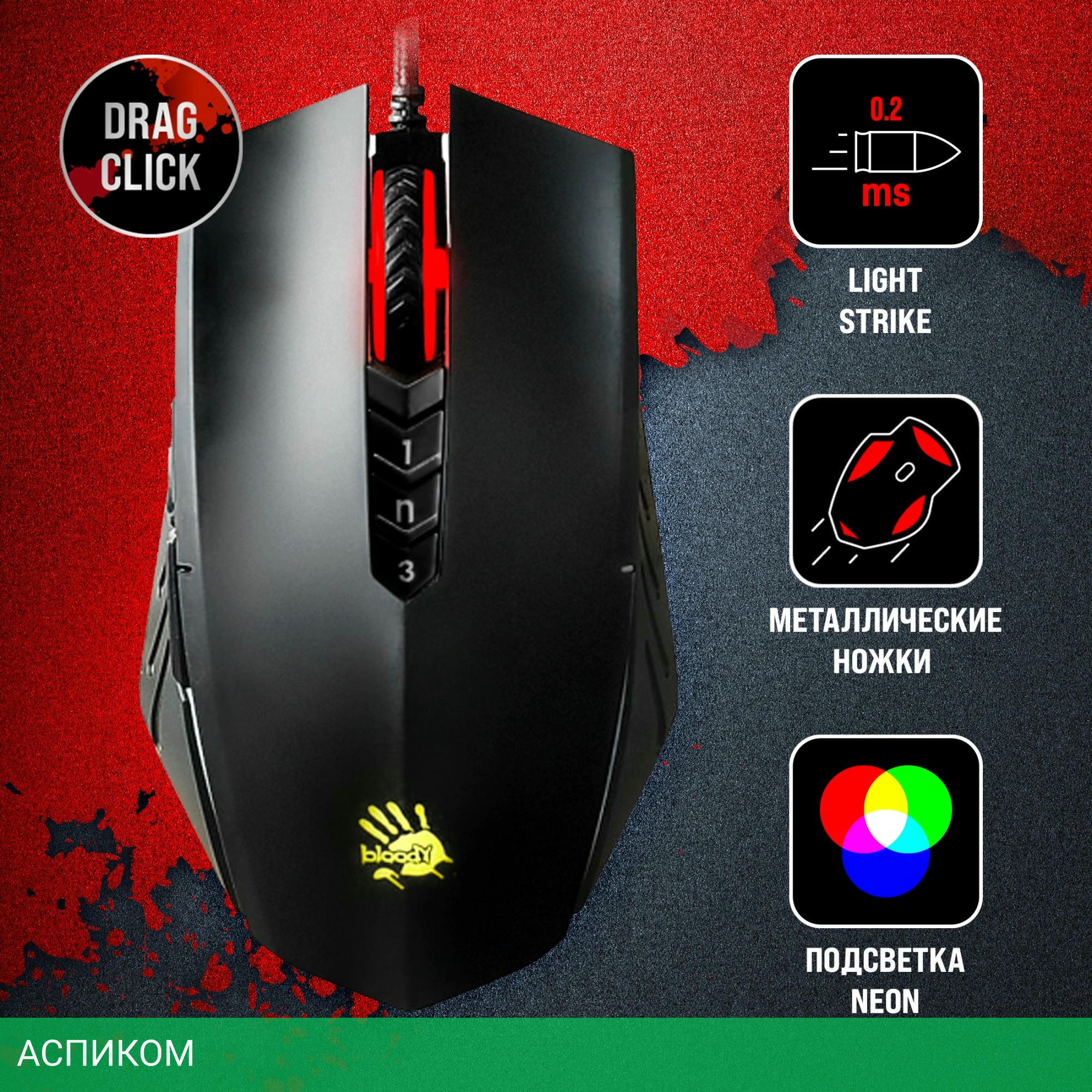 игровая мышь / черный / для ПК / полноразмерная / проводная USB / оптический / да / 6200.0 / да / 8 / 1.8