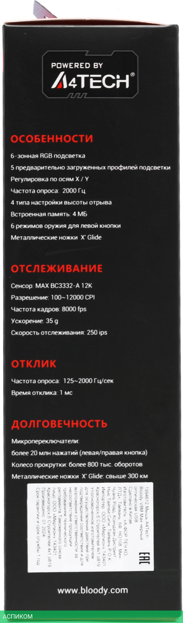 игровая мышь / черный / для ПК / полноразмерная / проводная USB / оптический / да / 12000.0 / да / 10 / 1.8