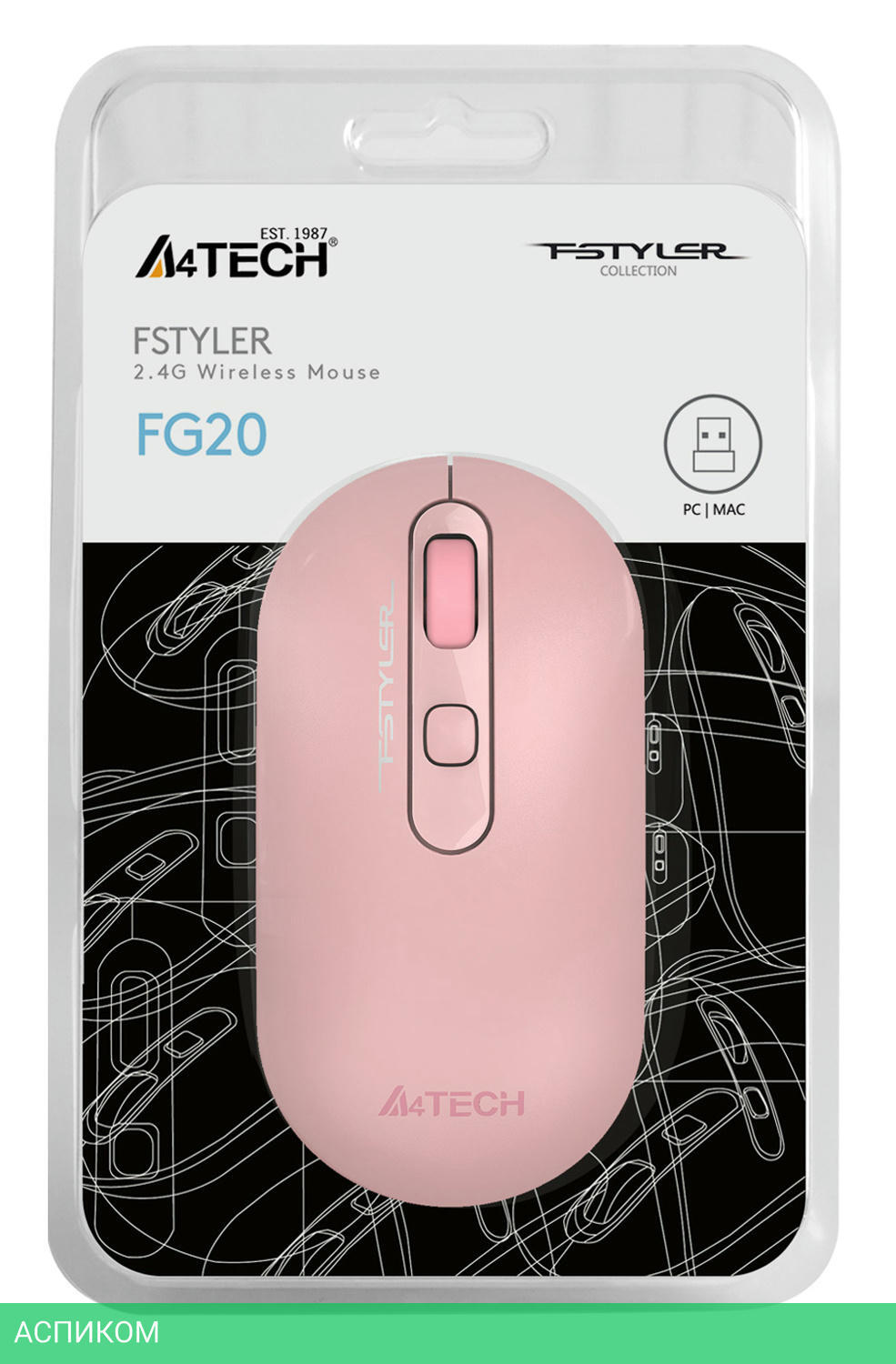 мышь / для ПК / полноразмерная / беспроводная радио / розовый / оптический / да / 2000.0 / нет / 4