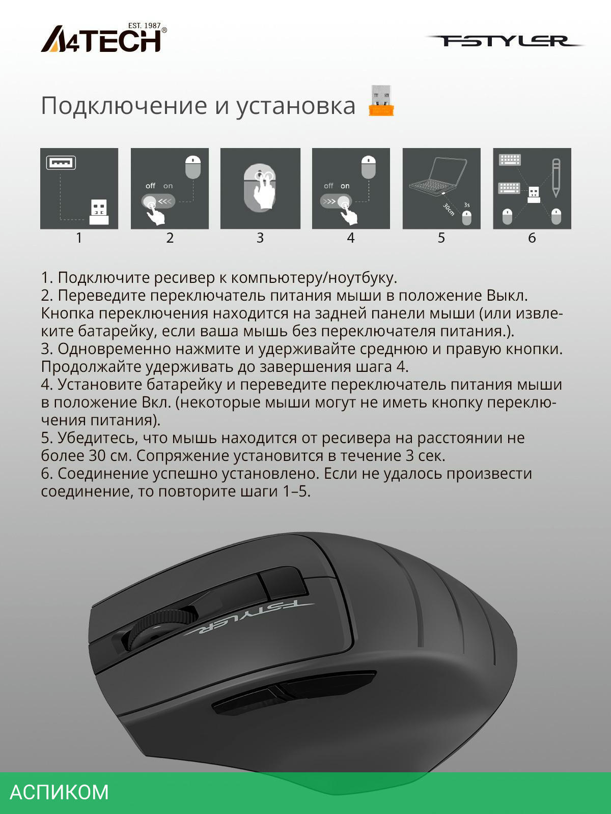 мышь / для ПК / ноутбучная / радио / серый / оптический / да / 2000.0 / нет / 6