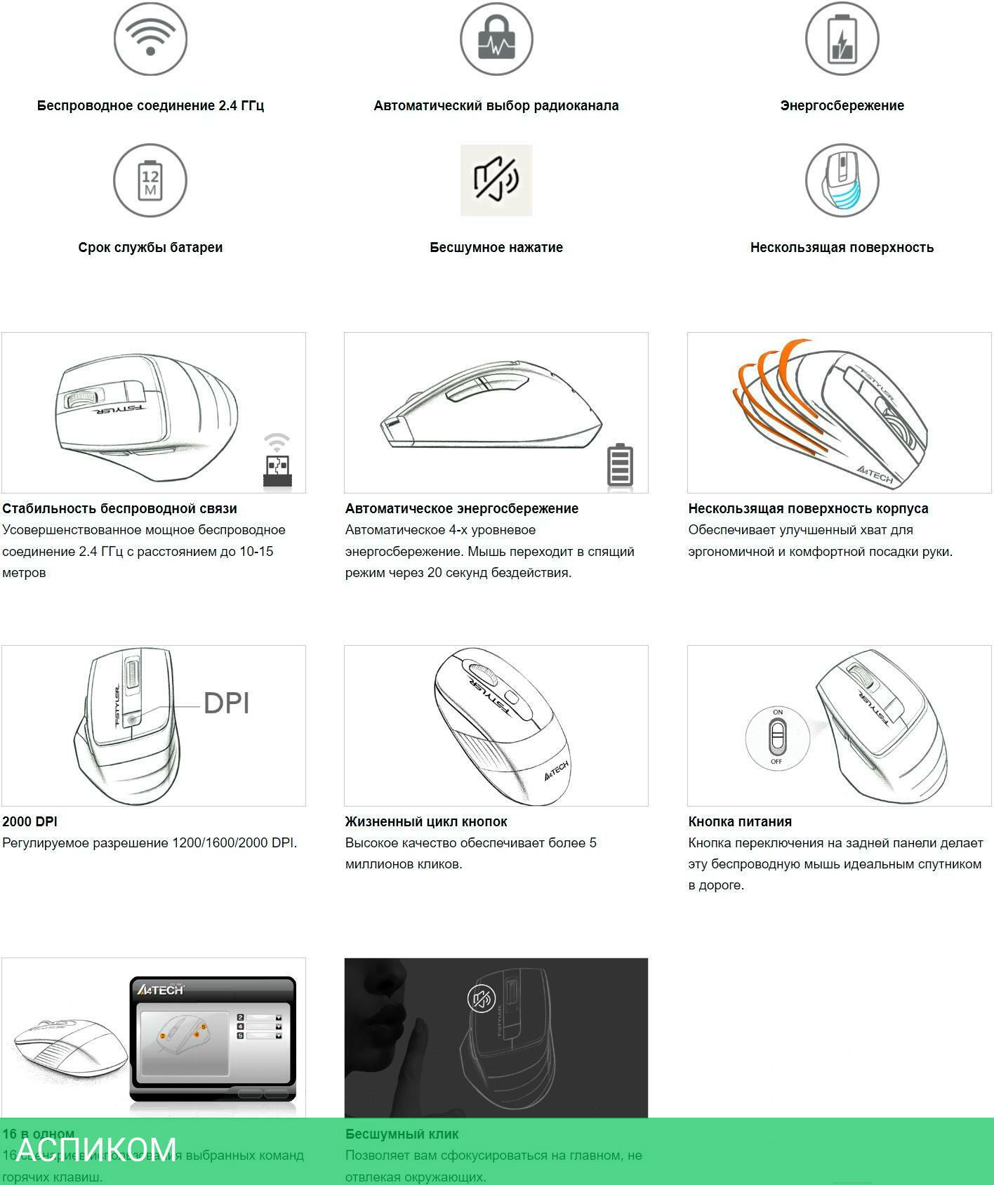 мышь / серый; синий / для ПК / полноразмерная / беспроводная радио / оптический / да / 2000.0 / нет / 6