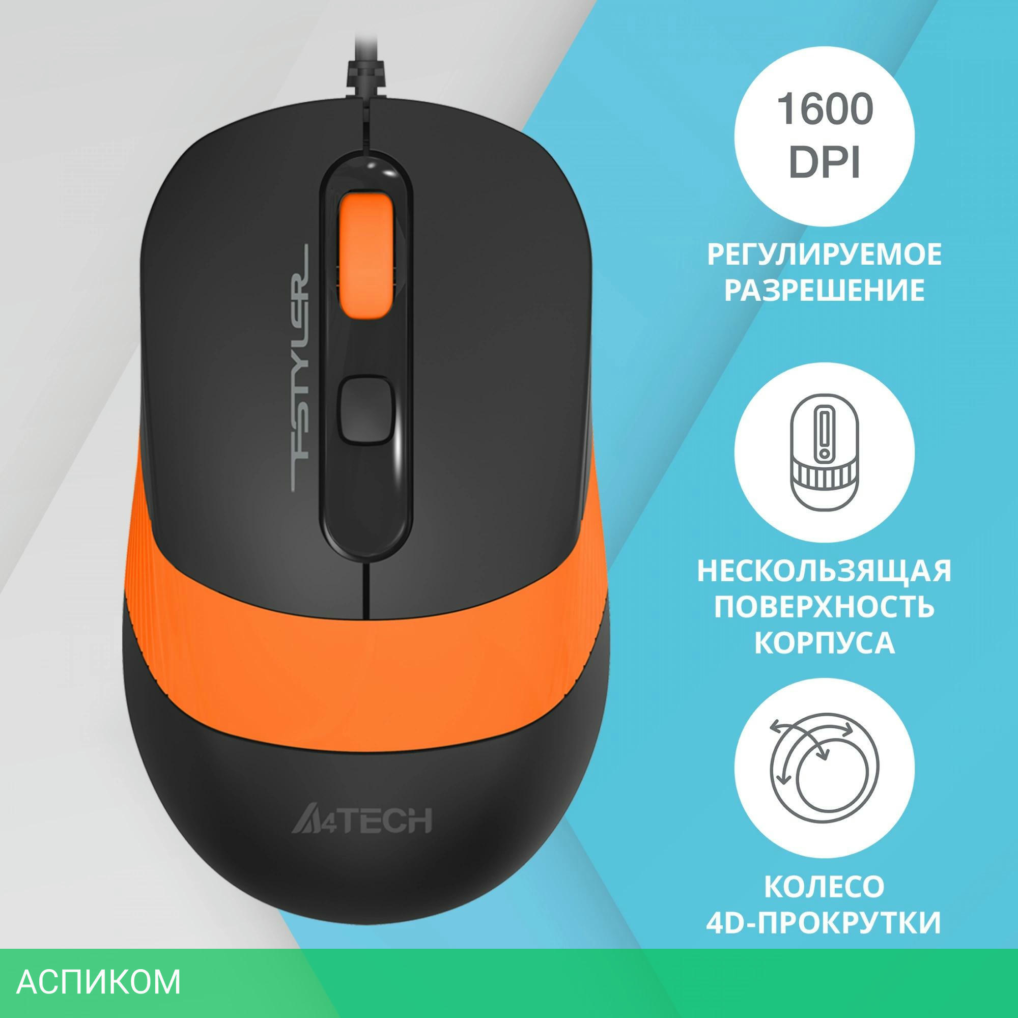 мышь / для ПК / полноразмерная / проводная USB / оптический / да / 1600.0 / нет / 4 / 1.5 / черный; оранжевый