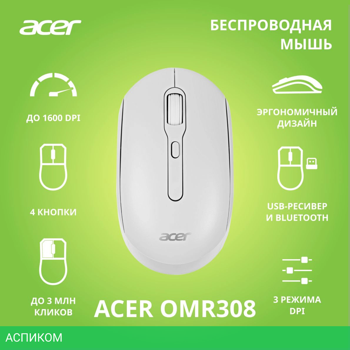 мышь / для ПК / полноразмерная / беспроводная радио/Bluetooth / белый / оптический / да / 1600.0 / нет / 4