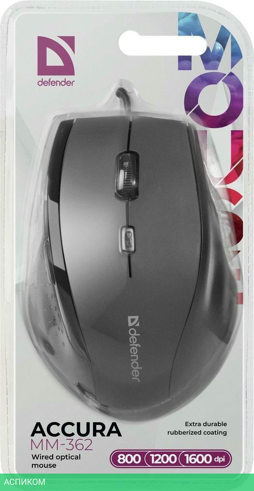 мышь / черный / для компьютеров Apple; для ПК / полноразмерная / проводная USB / оптический / да / 1600.0 / нет / 6 / 1.5
