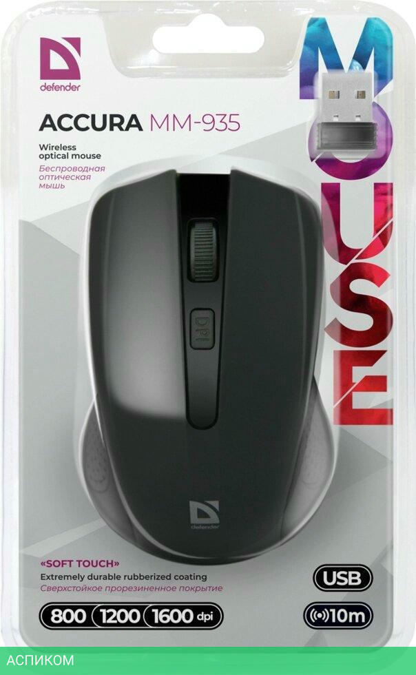 мышь / черный / для ПК / полноразмерная / беспроводная радио / оптический / да / 1600.0 / нет / 4
