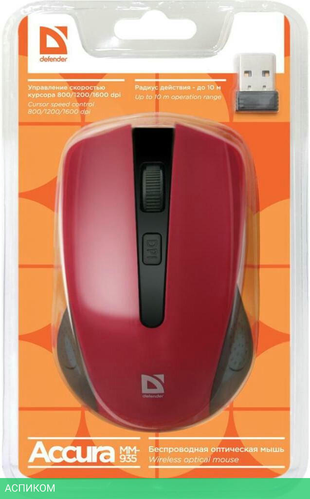 мышь / красный / для ПК / полноразмерная / беспроводная радио / оптический / да / 1600.0 / нет / 4