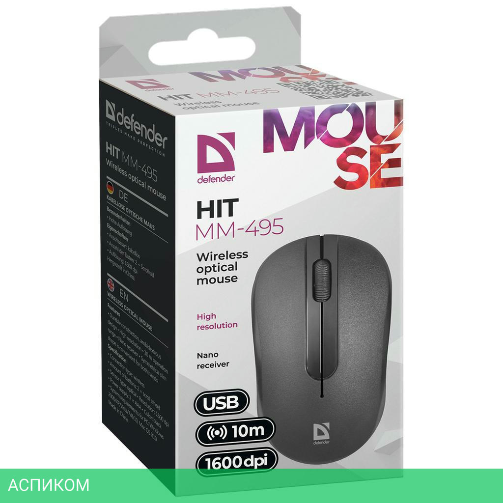 мышь / черный / для ПК / полноразмерная / радио / оптический / да / 1600.0 / нет / 2