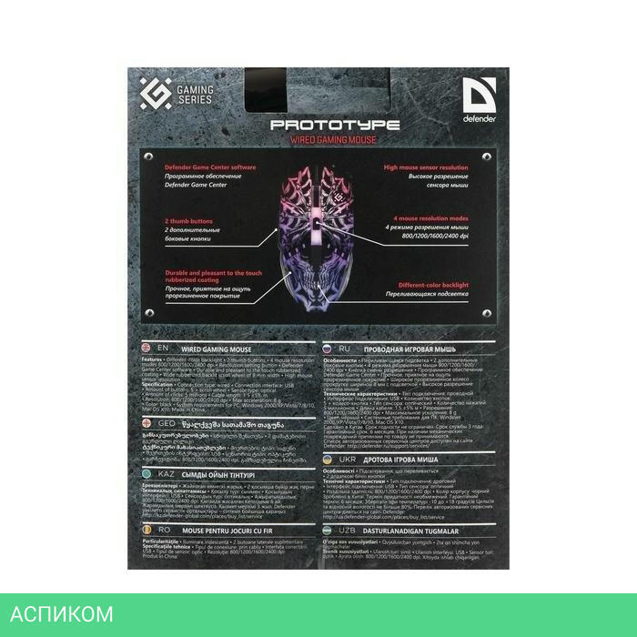 мышь / черный / для ПК / полноразмерная / проводная USB / оптический / да / 2400.0 / да / 6 / 1.5