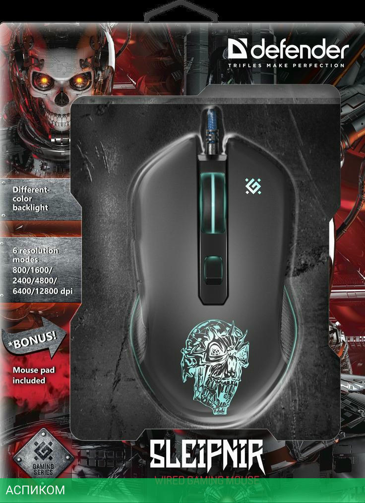 игровая мышь / черный / для ПК / полноразмерная / проводная USB / оптический / да / 12800.0 / да / 6 / 1.5
