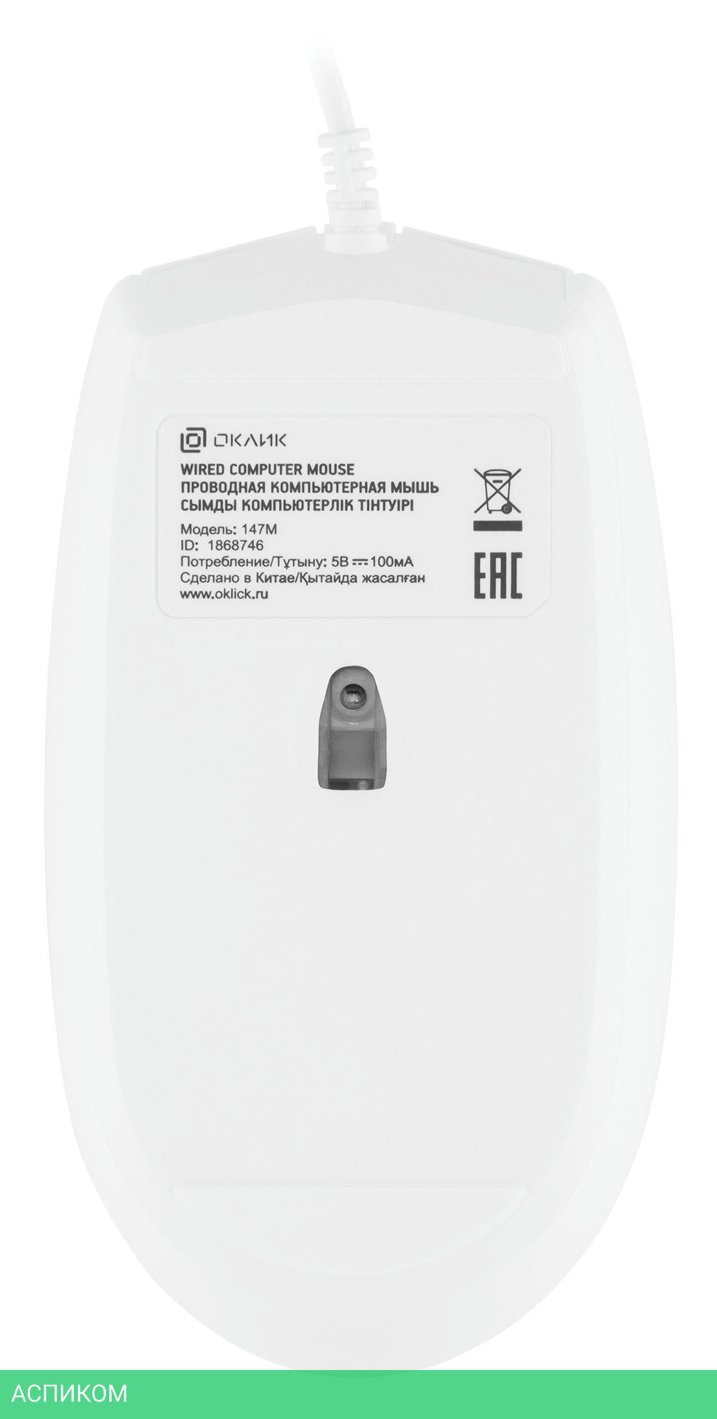 мышь / белый / для ПК / полноразмерная / проводная USB / оптический / да / 2000.0 / 4 / 1.6