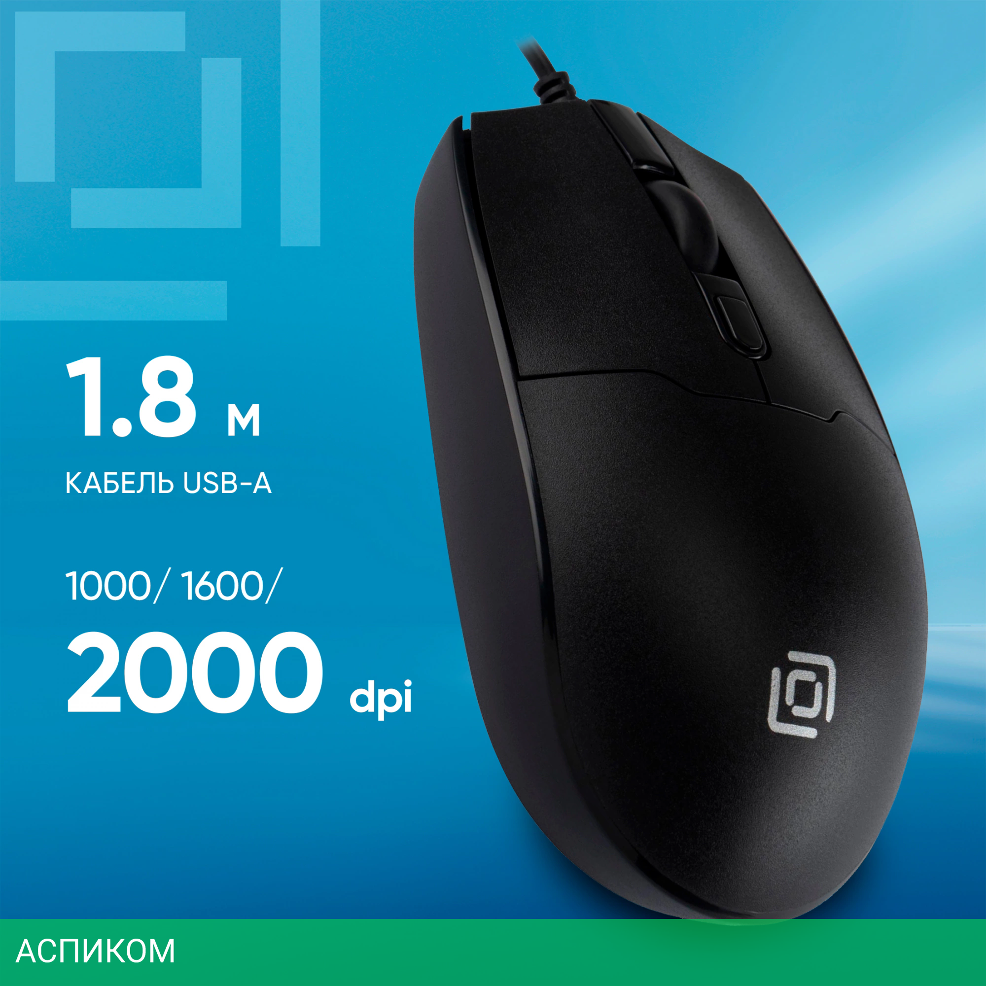 мышь / для ПК / полноразмерная / проводная USB / черный / оптический / да / 2000.0 / нет / 4 / 1.8