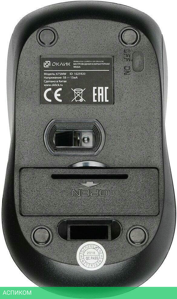 мышь, две батарейки стандарта AAA, USB передатчик, документация, упаковка