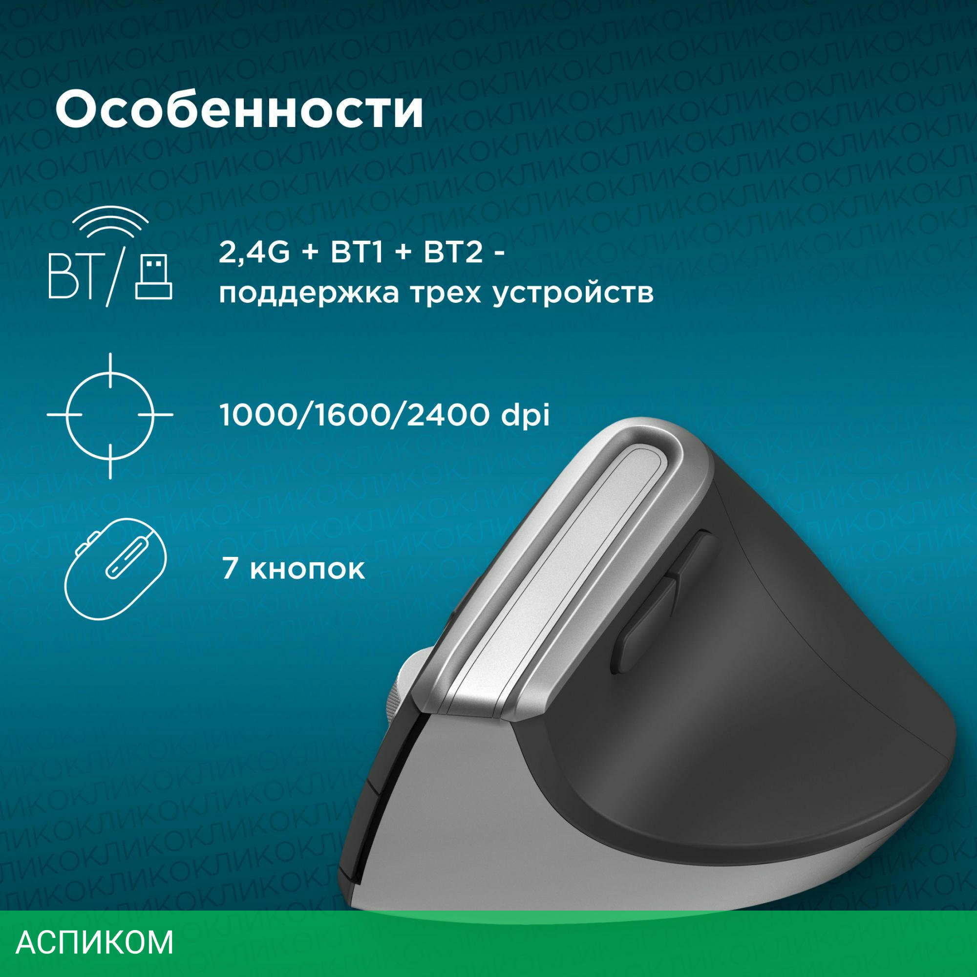 мышь / серый / для ПК / ноутбучная / Bluetooth; радио / оптический / да / 2400.0 / да / 7