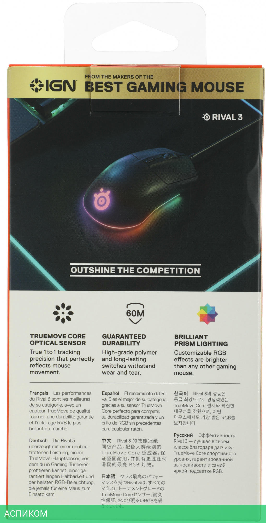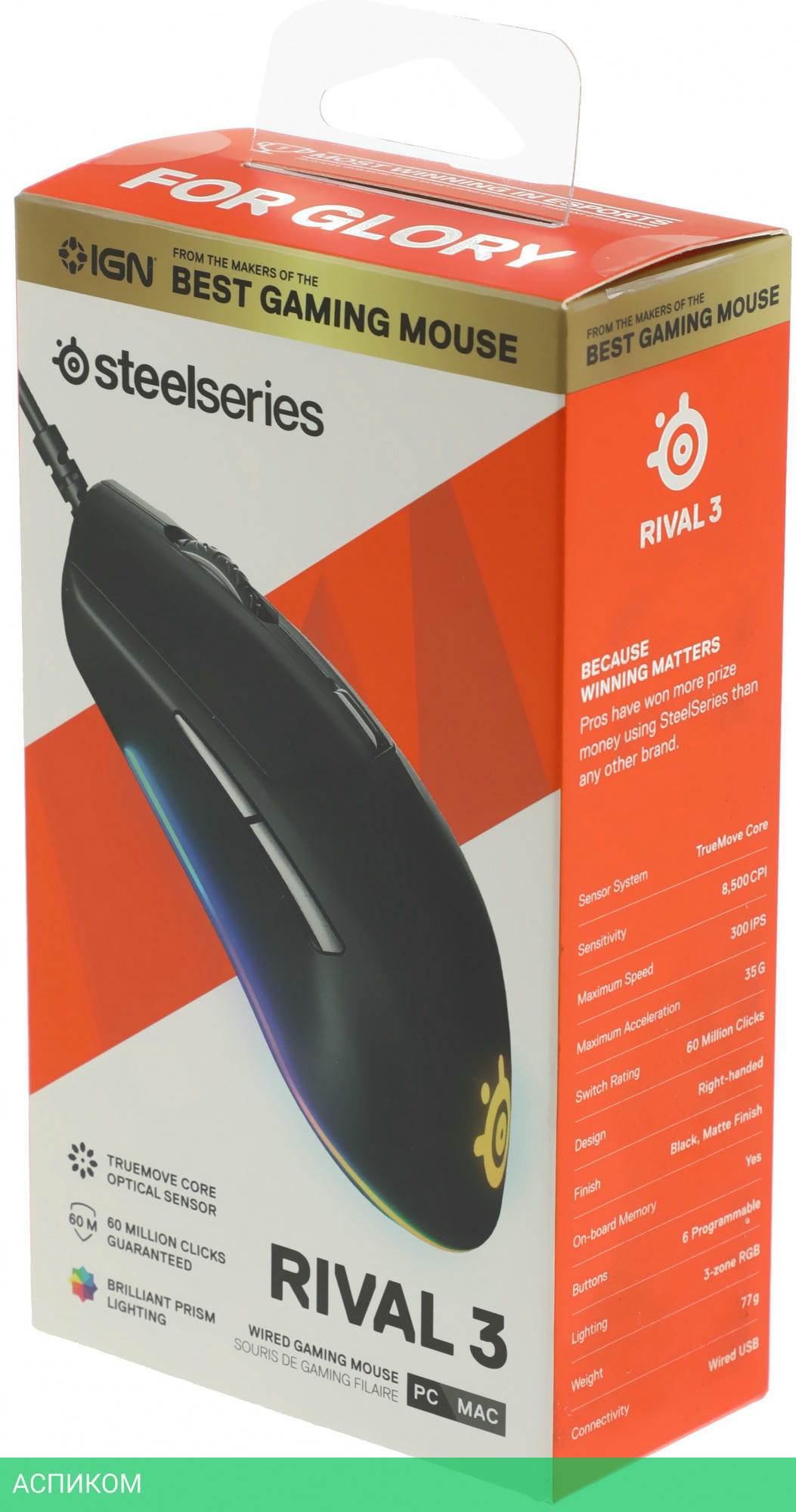игровая мышь / черный / для ПК / полноразмерная / проводная USB / оптический / да / 8500.0 / да / 6 / 1.8