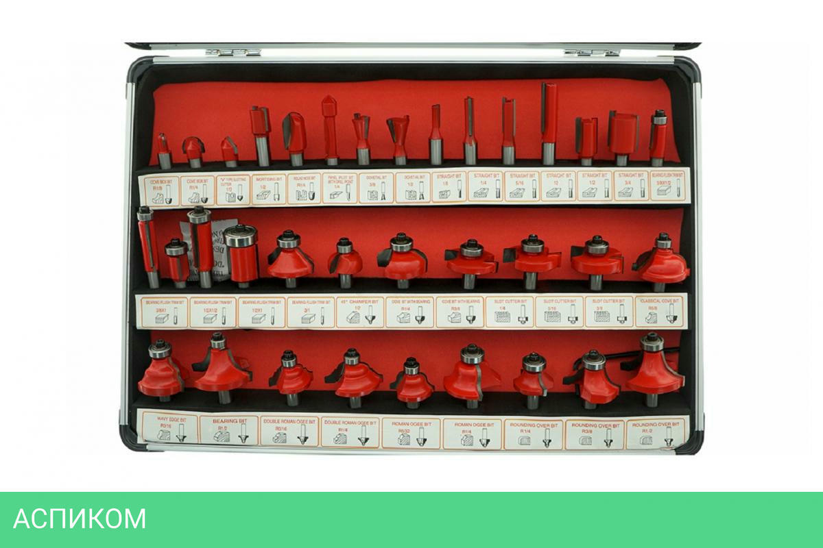 - Фреза галтельная 8 мм - 3 шт- Фреза пазовая v-образная 8 мм- Фреза пазовая прямая 8 мм - 5 шт- Фреза конструкционная "ласточкин хвост" 8 мм - 2 шт- Фреза кромочная прямая 8 мм - 6 шт- Фреза калевочная 8 мм - 13 шт- Фреза шлицевая 8 мм- Фреза фальцевая 8 мм - 3 шт- Фреза конусная 8 мм