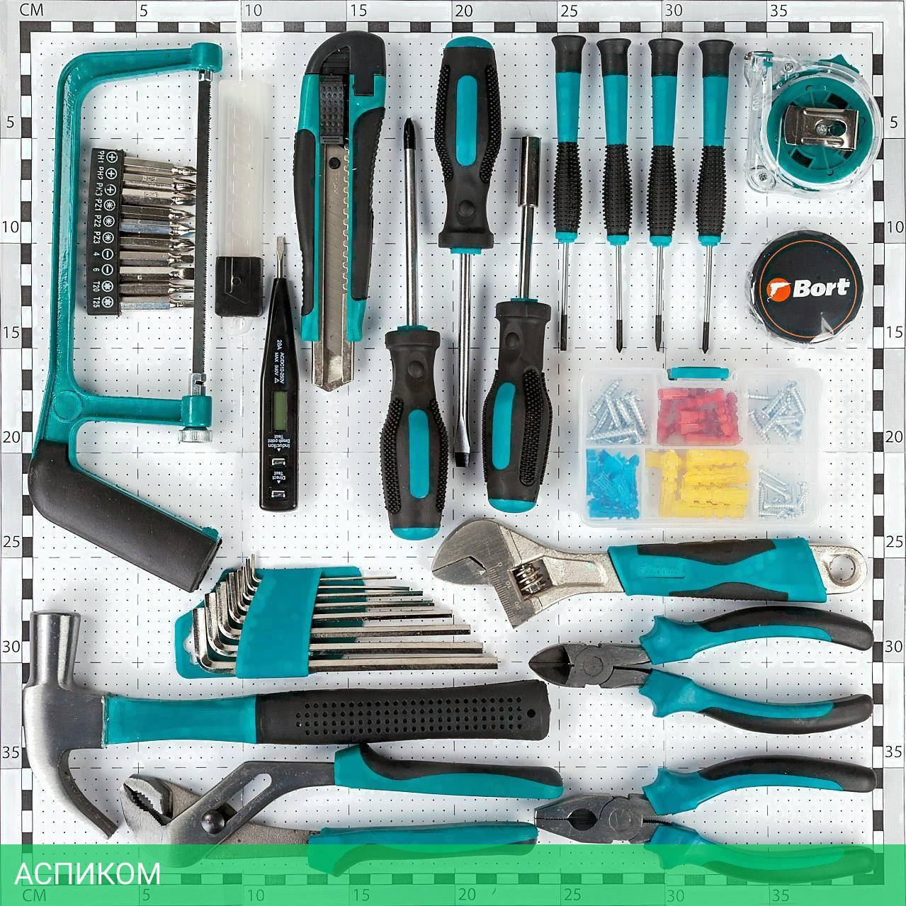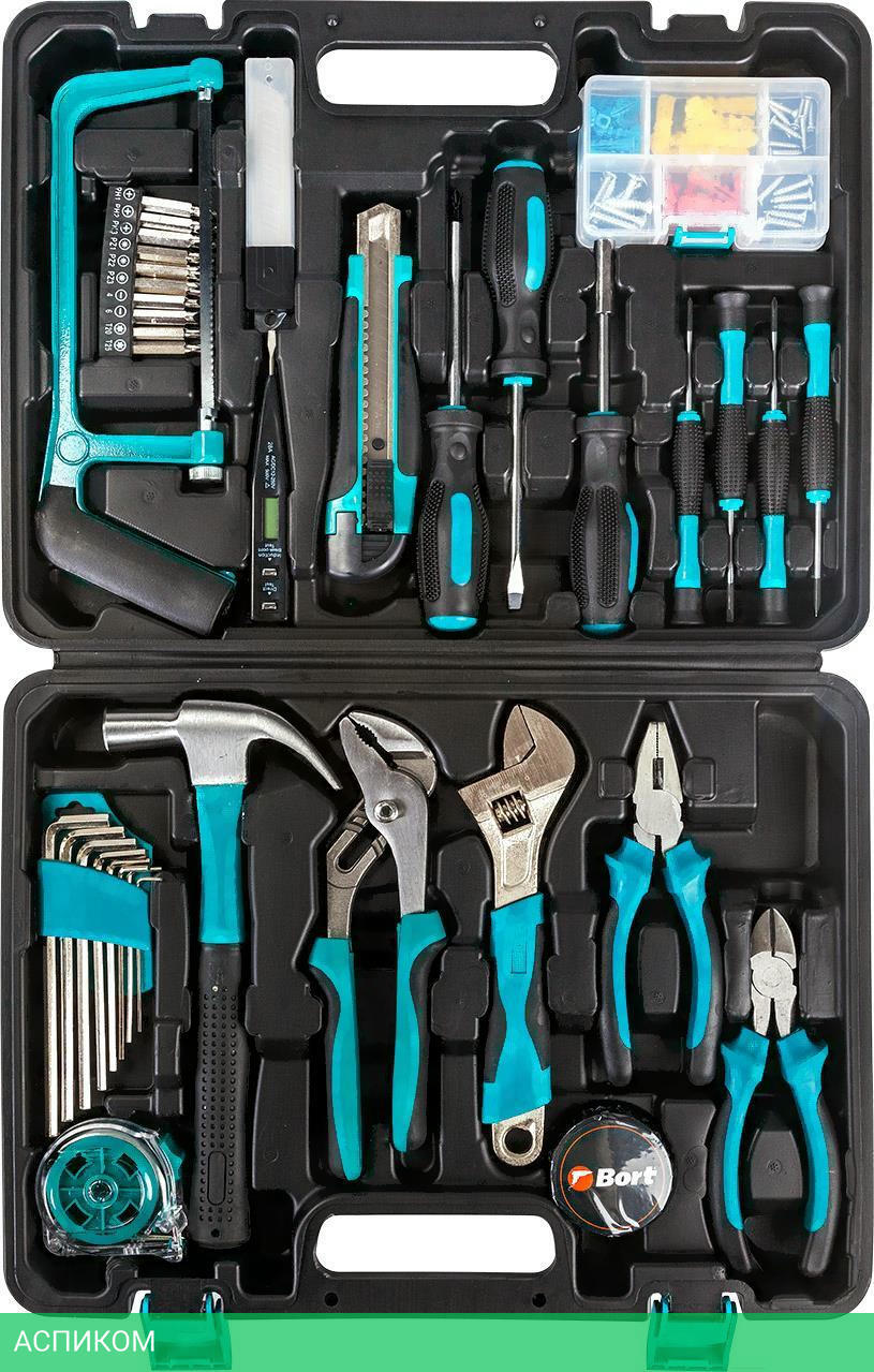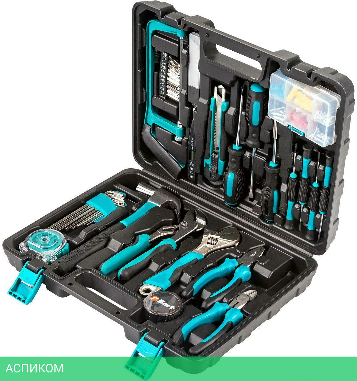изолента, индикаторная отвертка, набор крепежа 60 шт, набор сменных лезвий, нож монтажный, ножовка по металлу, рулетка