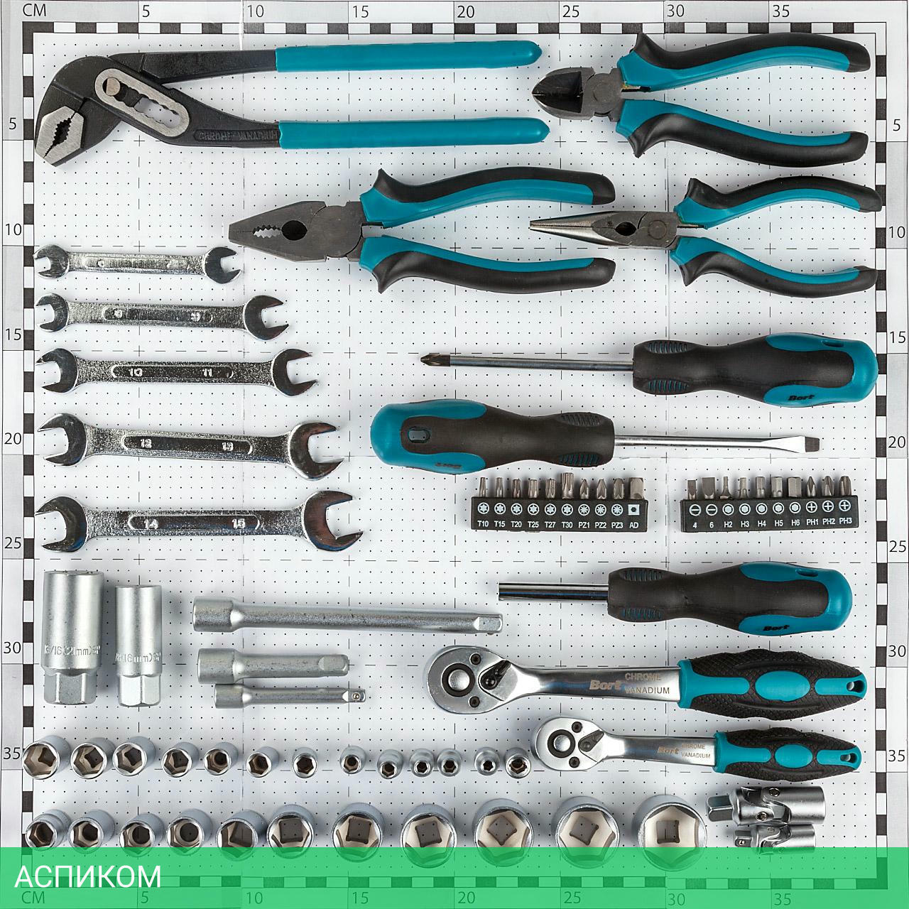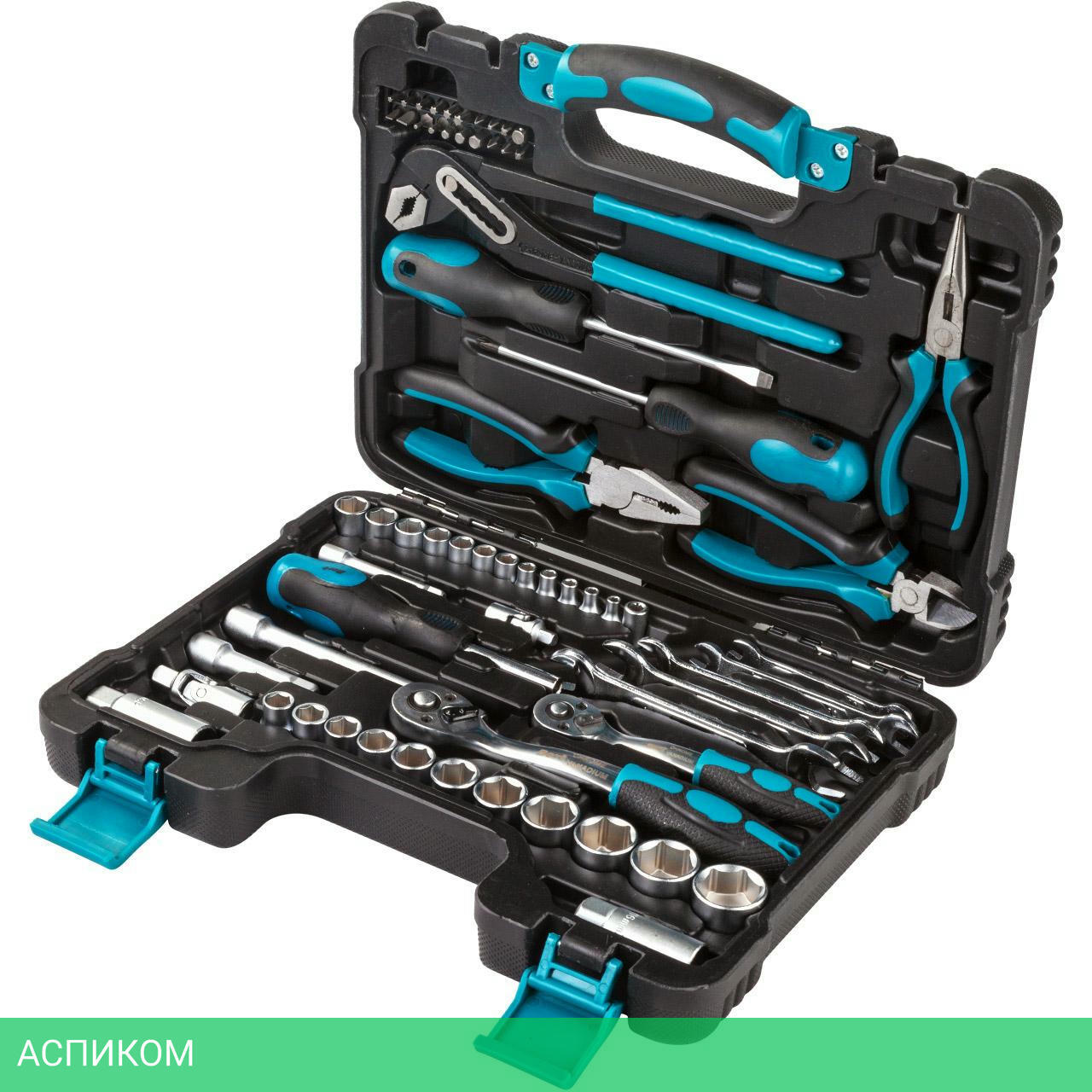 Бита 25 мм 20шт (4, 6, PH1, PH2, PH3, PZ1, PZ2, PZ3, T10, T15, T20, T25, T27, T30, H2, H3, H4, H5, H6, AD)БокорезыГоловки 1/4" 12шт (4, 4.5, 5, 5.5, 6, 7, 8, 9, 10, 11, 12, 13)Головки 3/8" 11шт (10, 11, 12, 13, 14, 15, 17, 19, 21, 22, 24)ДлинногубцыКлещи переставныеКлюч гаечный 5шт (6-7, 8-9, 10-11, 12-13, 14-15)Ключ трещеточный 1/4"Ключ трещеточный 3/8"МуфтаОтвертка 100мм 2шт (PH2, SL6)Отвертка-держатель для битПлоскогубцыСвечной ключ квадрат 3/8" 16ммСвечной ключ квадрат 3/8" 21ммУдлинитель квадрат 1/4 3"Удлинитель квадрат 3/8 3"Удлинитель квадрат 3/8 6"Шарнир карданный 1/4"Шарнир карданный 3/8"