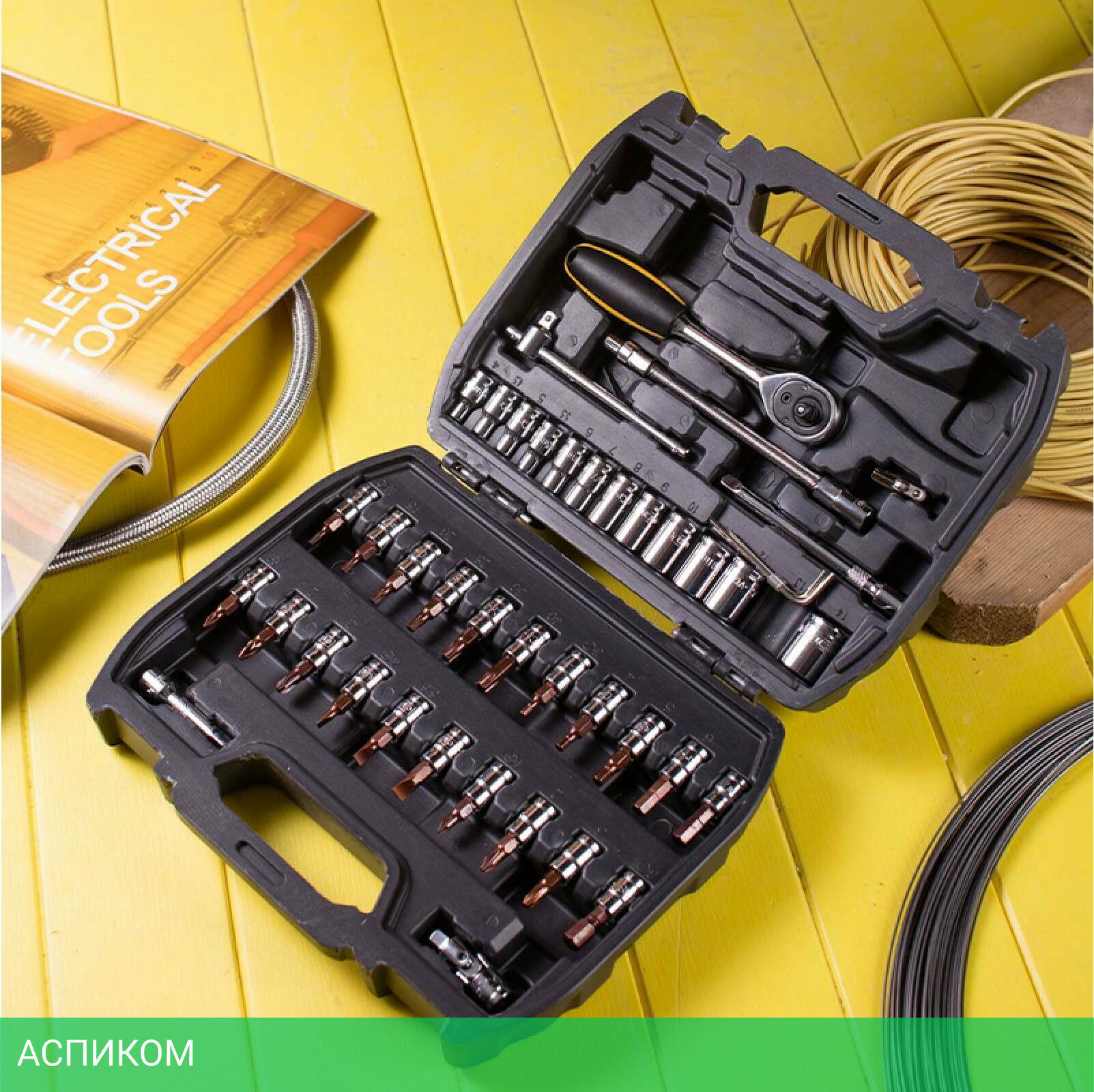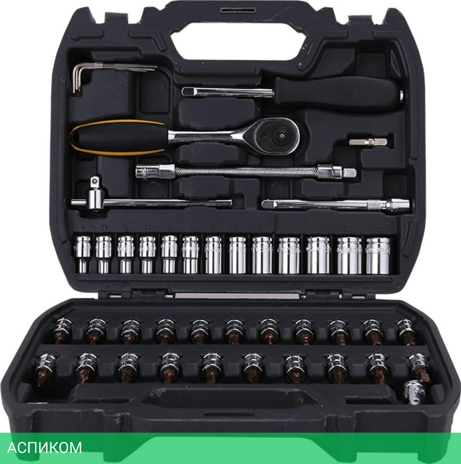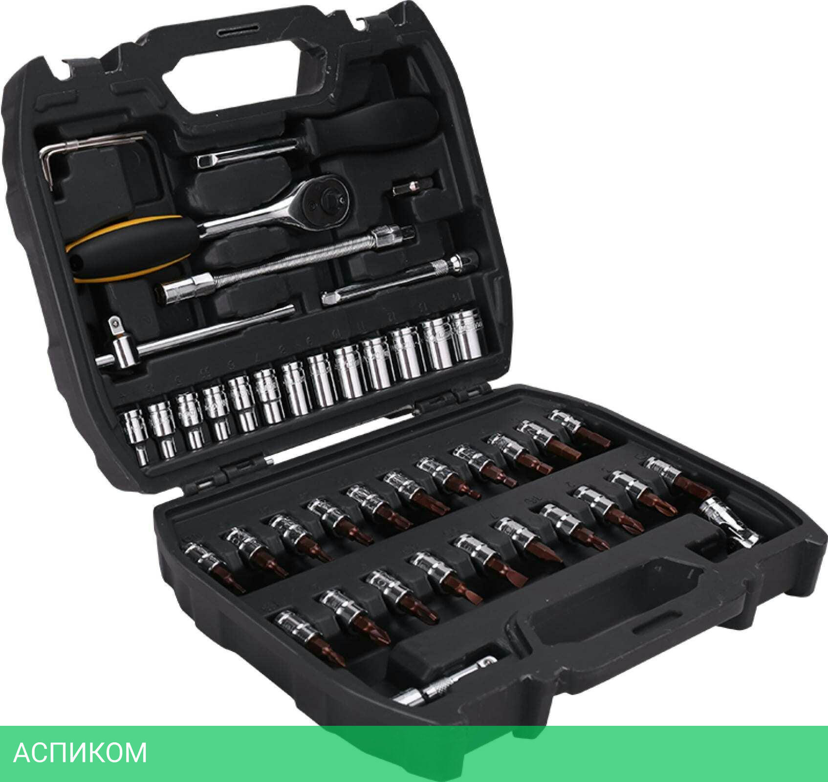 - 1/4" универсальный шарнир- 1/4" скользящий стержень- 1" 6,3 мм вращающийся шарнир- 1" 6,3 мм вращающийся стержень- 1/4" трещоточный ключ- 1/4" шарнирный кардан- 4 шестигранных ключа: 1,27, 1,5, 2, 2,5 мм- 2 удлинителя 1/4 дюйма: 2 ", 4"- 13 головок 1/4 дюйма: 4, 4,5, 5, 5,5, 6, 7, 9, 10, 11, 12, 13, 14 мм- 1/4" Торцевые головки-биты: PZ1, PZ2, PZ3, PH1, PH2, PH3, H3, H4, H5, H6, H7, H8, T10, T15, T20, T25, T30, T40