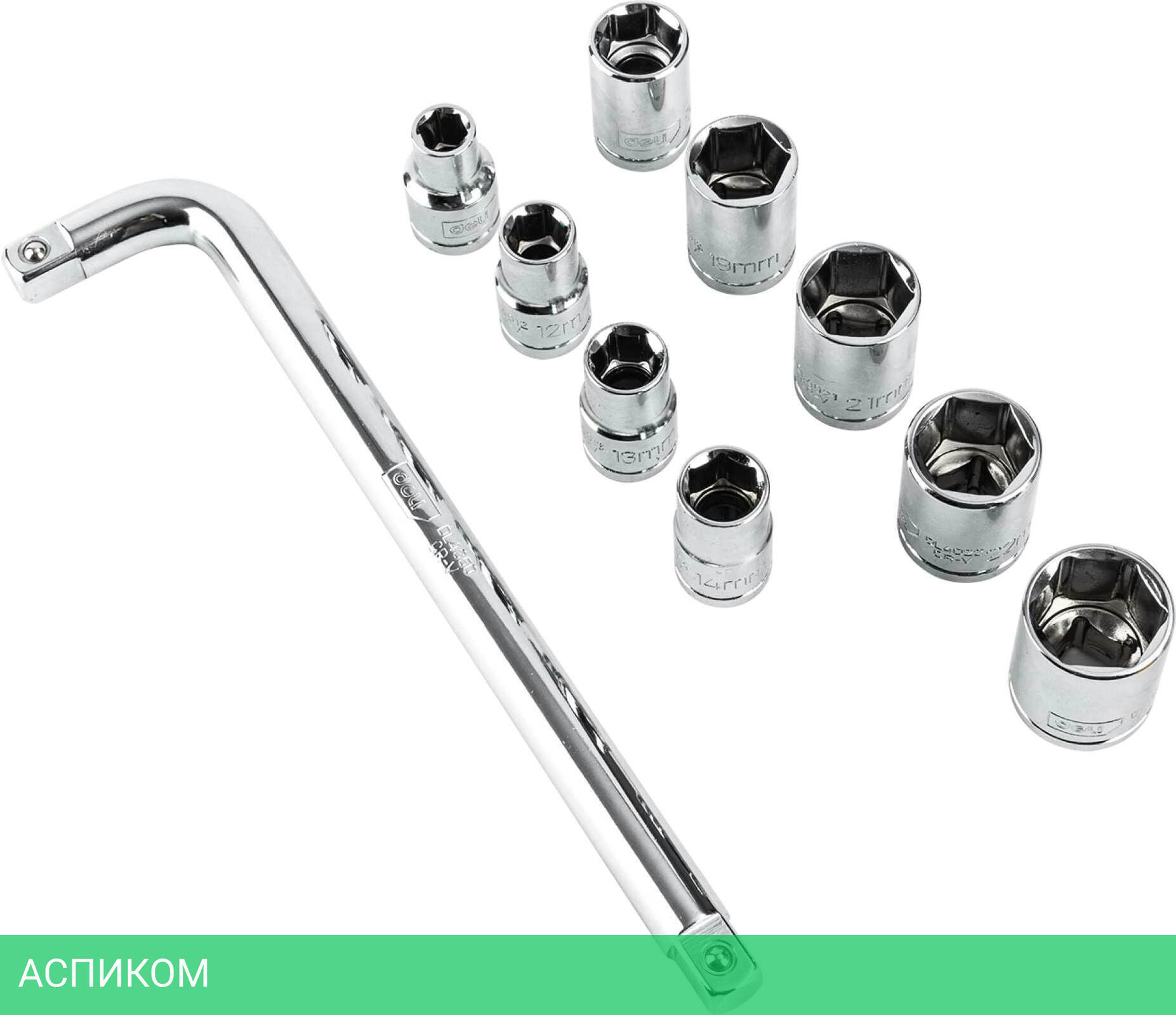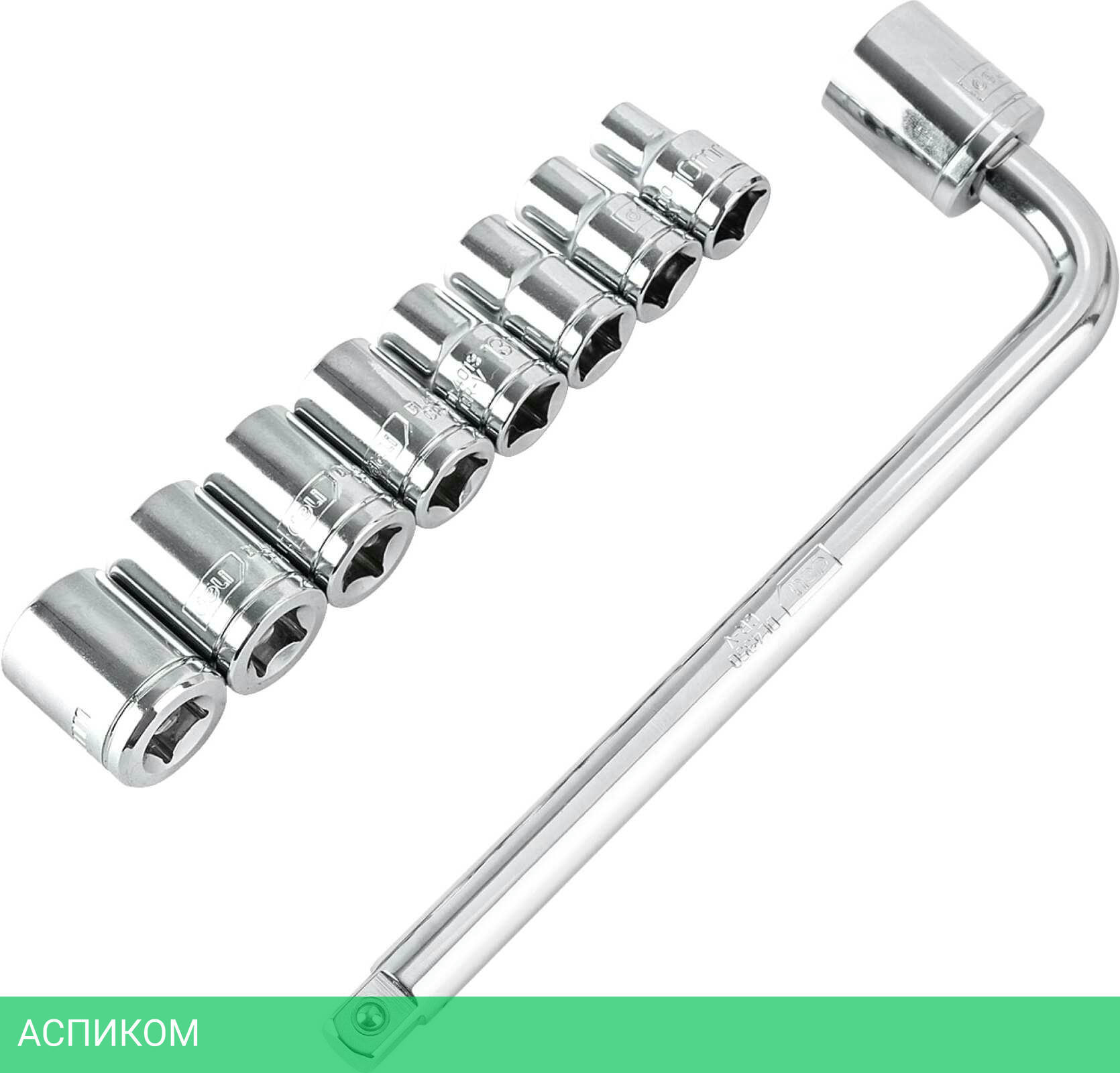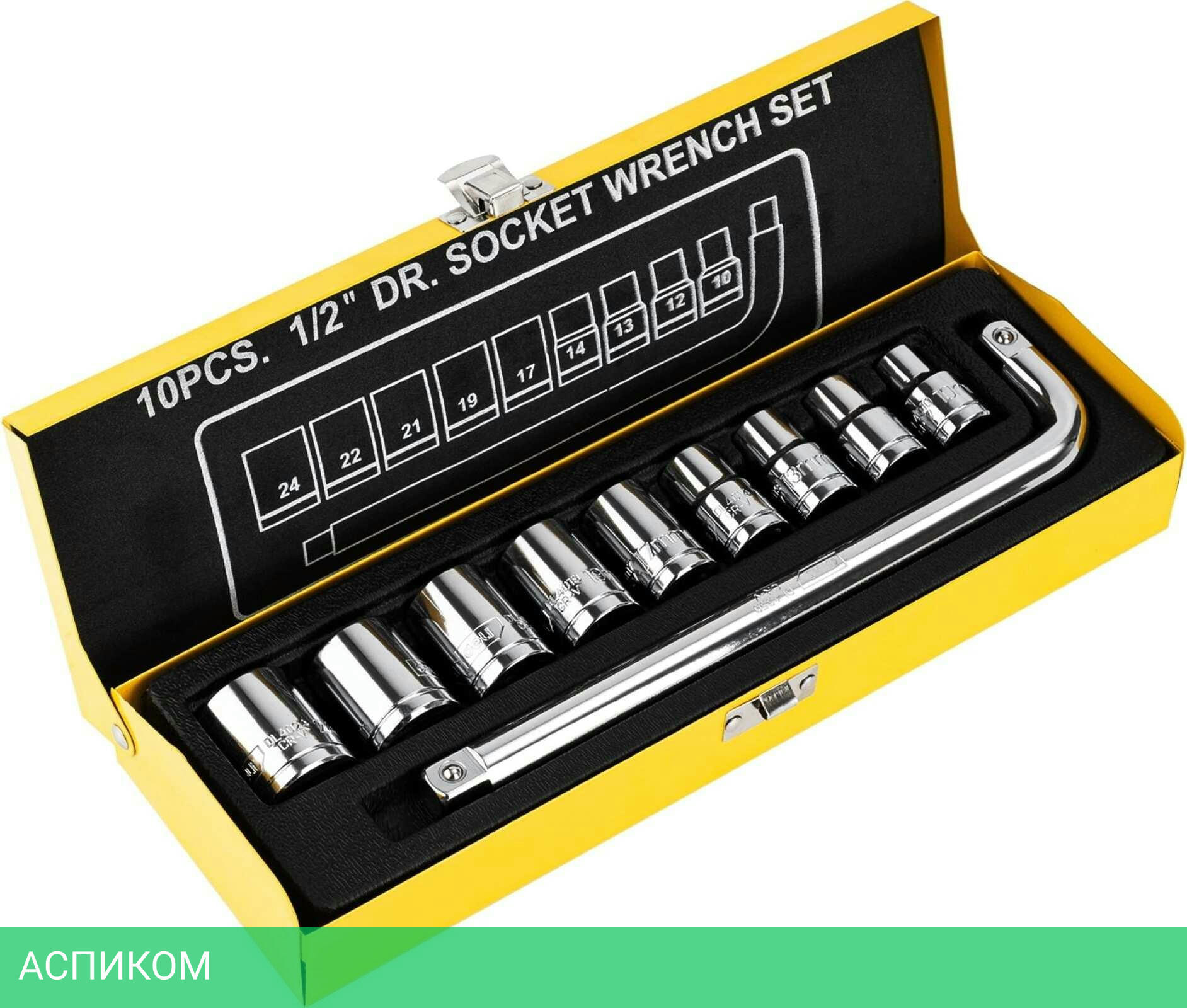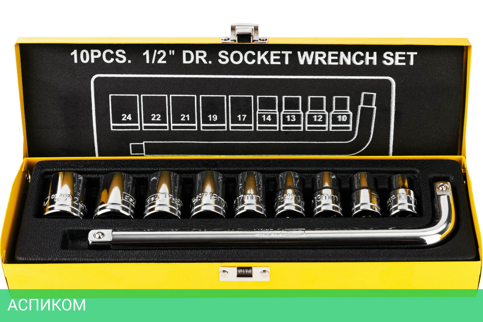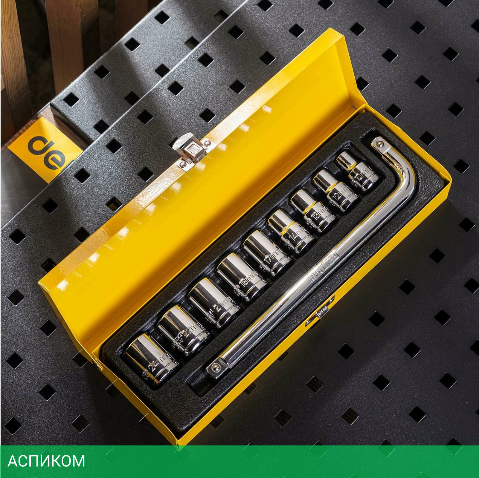 Набор из 10 элементов (1 ключ, 9 торцевых головок), кейс-органайзер