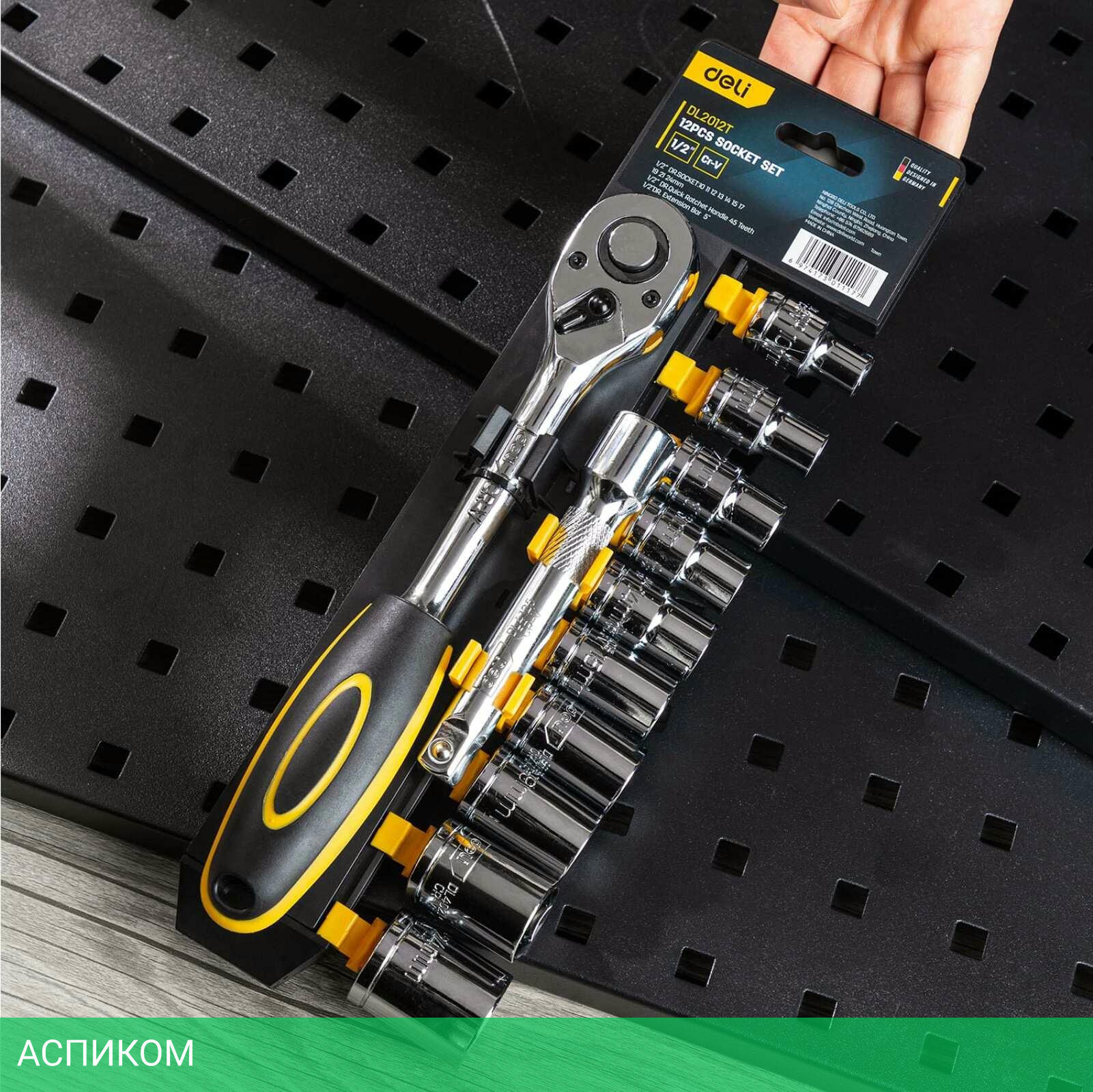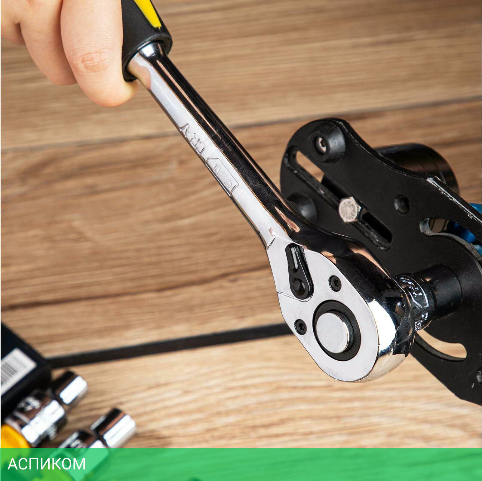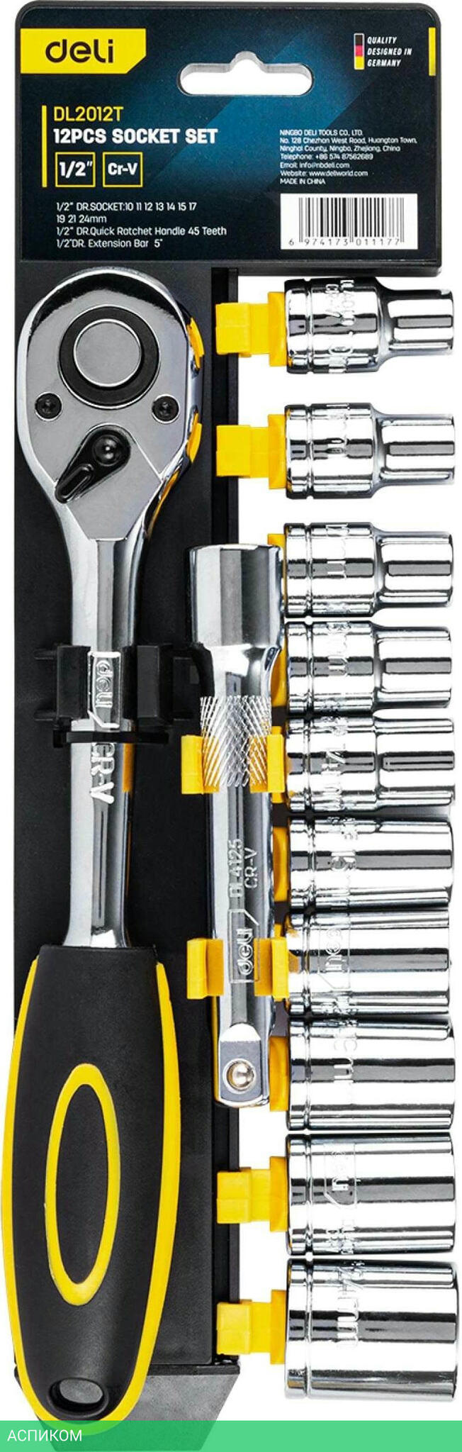 10 торцевых головок (10,11,12,13,14,15,17,19,21,24 мм), удлинитель, трещотка 45 зубьев, сталь 50BV30