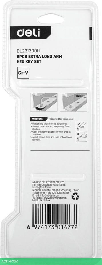 9 ключей 1,5,2,2,5,3,4,5,6,8,10мм, органайзер