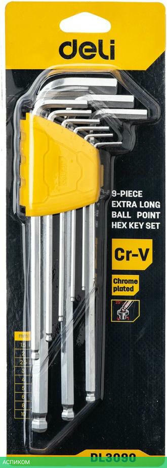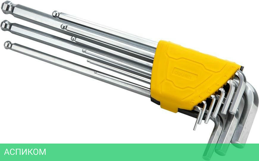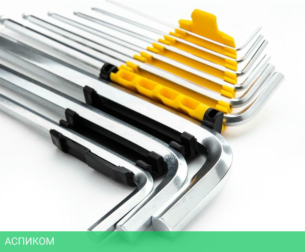 9 ключей 1.5 мм, 2 мм, 2.5 мм, 3 мм, 4 мм, 5 мм, 6 мм, 8 мм, 10 мм, органайзер
