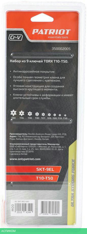 Виды ключей в наборе: Т10, Т15, Т20, Т25, Т27, Т30, Т40, Т45, Т50. Для хранения и переноски в комплекте идет пластиковый держатель.
