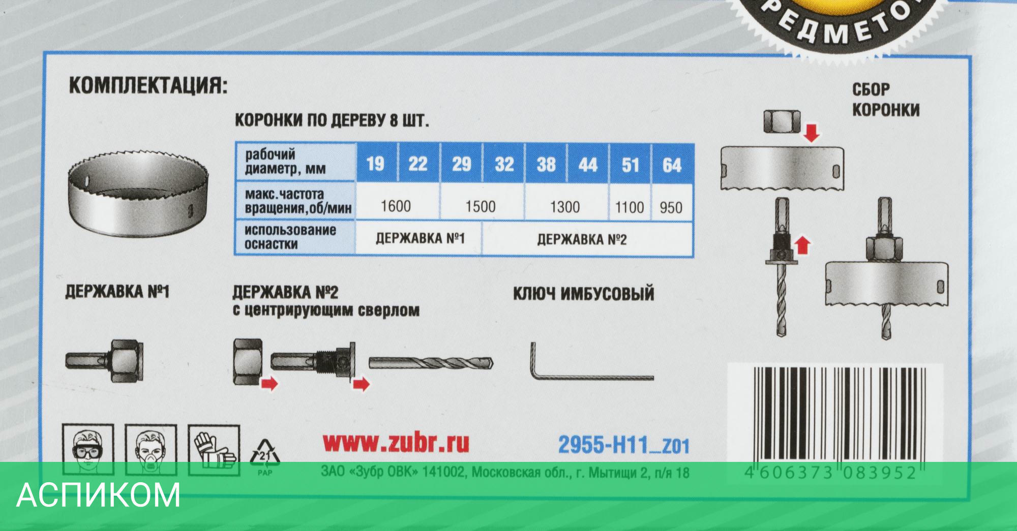 набор коронок / для шуруповерта; для дрели / для дерева / 11
