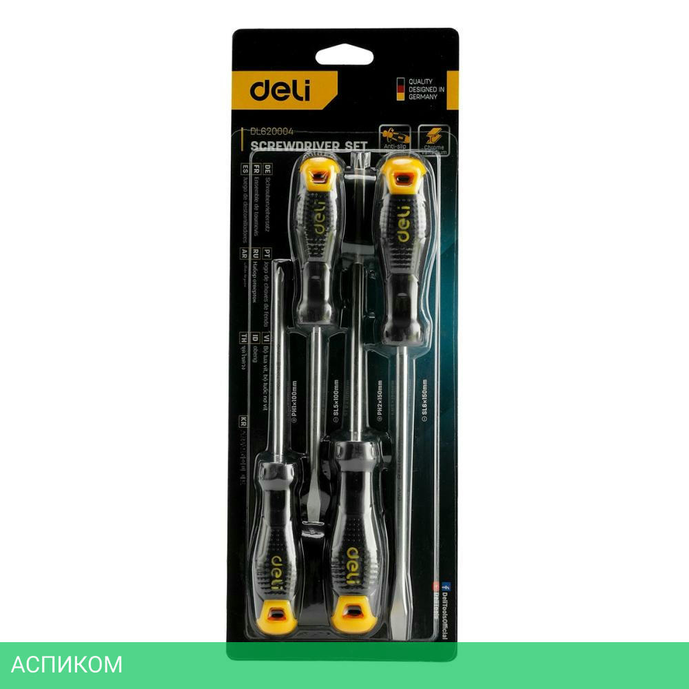 4 отвертки SL5x100 мм, SL6x150 мм, PH1x100 мм, PH2x150 мм