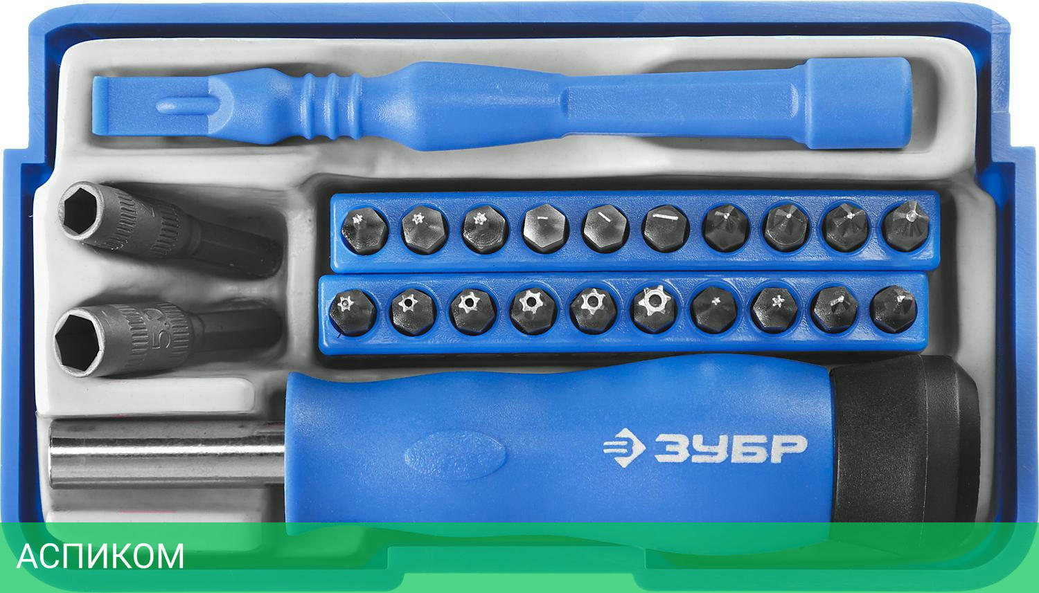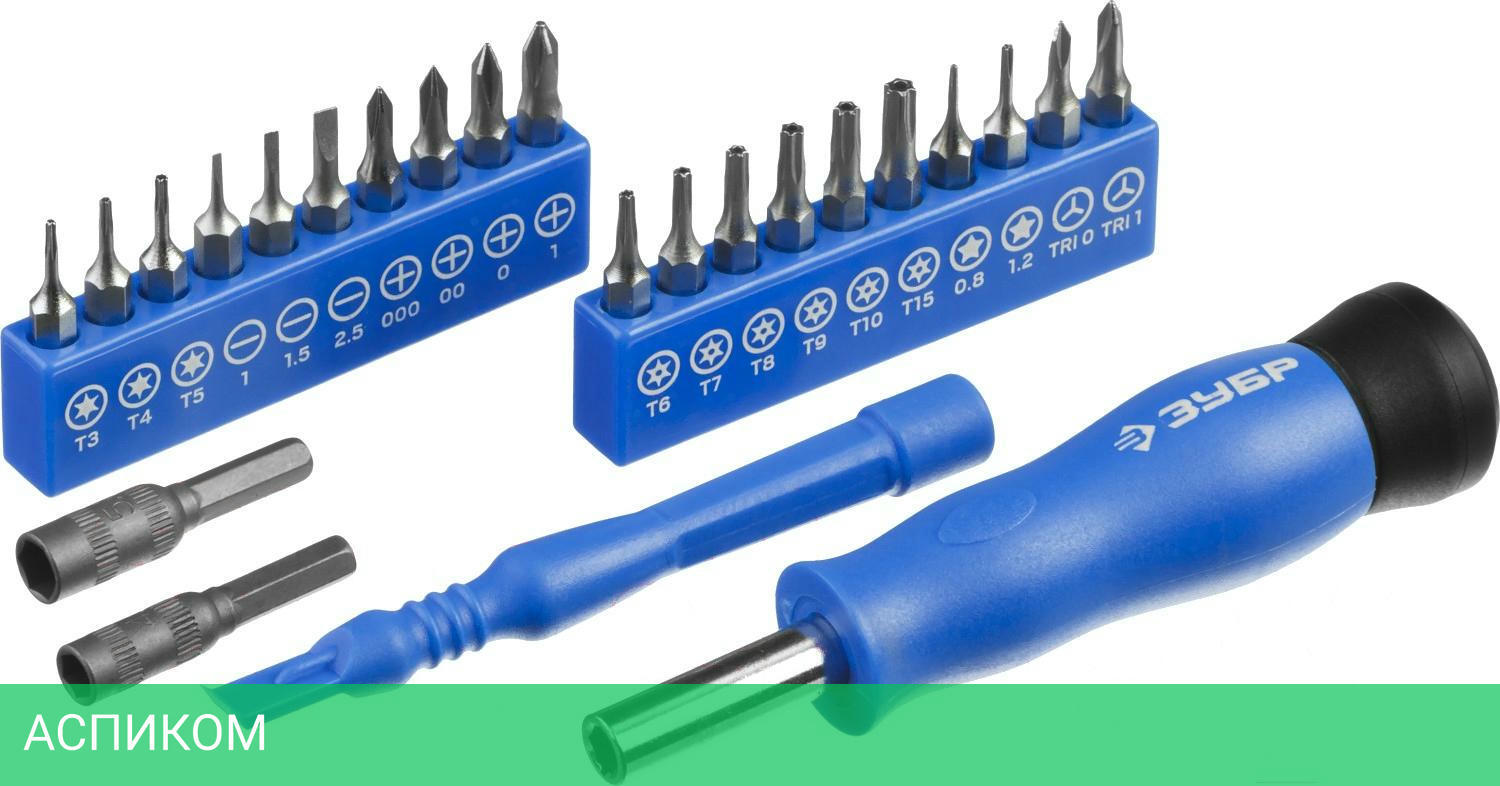 Отвертка с пружинным битодержателем и отсеком для бит в рукояткеБиты: SL1, SL1.5, SL2.5; PH000, PH00, PH0, PH1; TX3, TX4, TX5; TX Hole 6, 7, 8, 9 ,10, 15; TRI-Wing 0, 1; Pentagonal 1, 5Биты-торцовые головки 4, 5 ммСъемник панелей