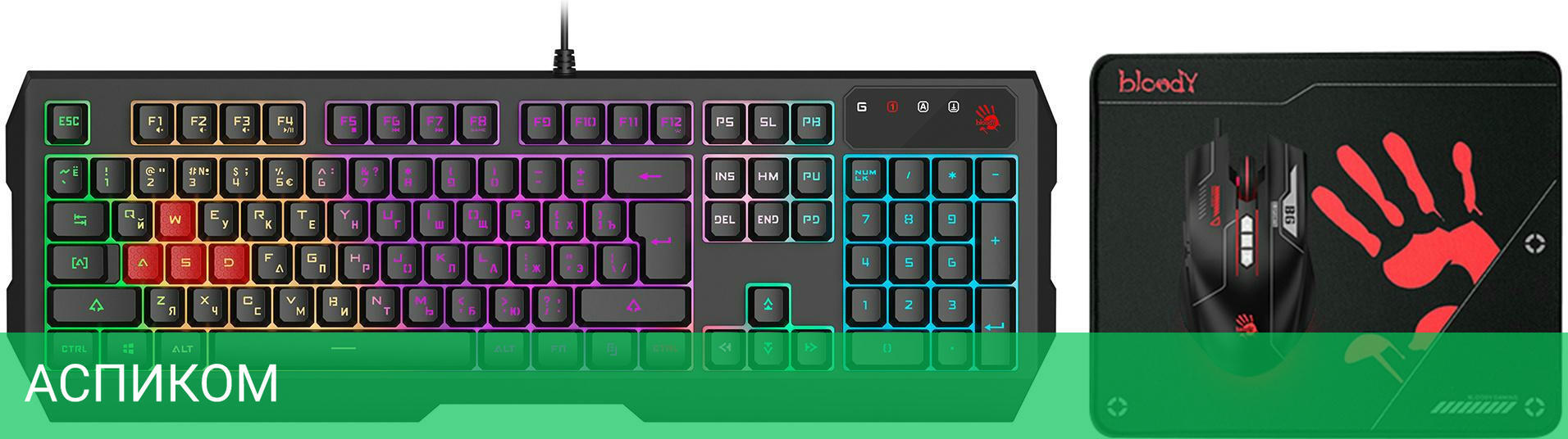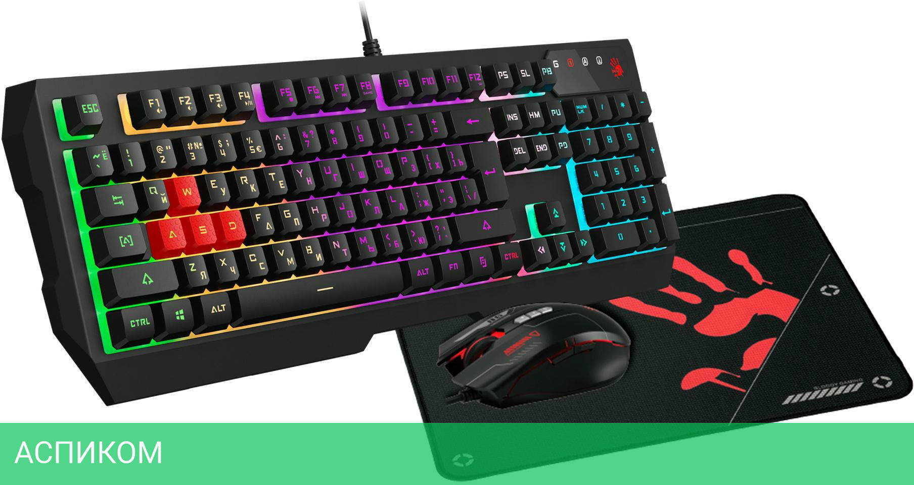 клавиатура + мышь с ковриком / черный / проводная USB / проводная USB / оптический / 3200.0 / классическая / да / 8