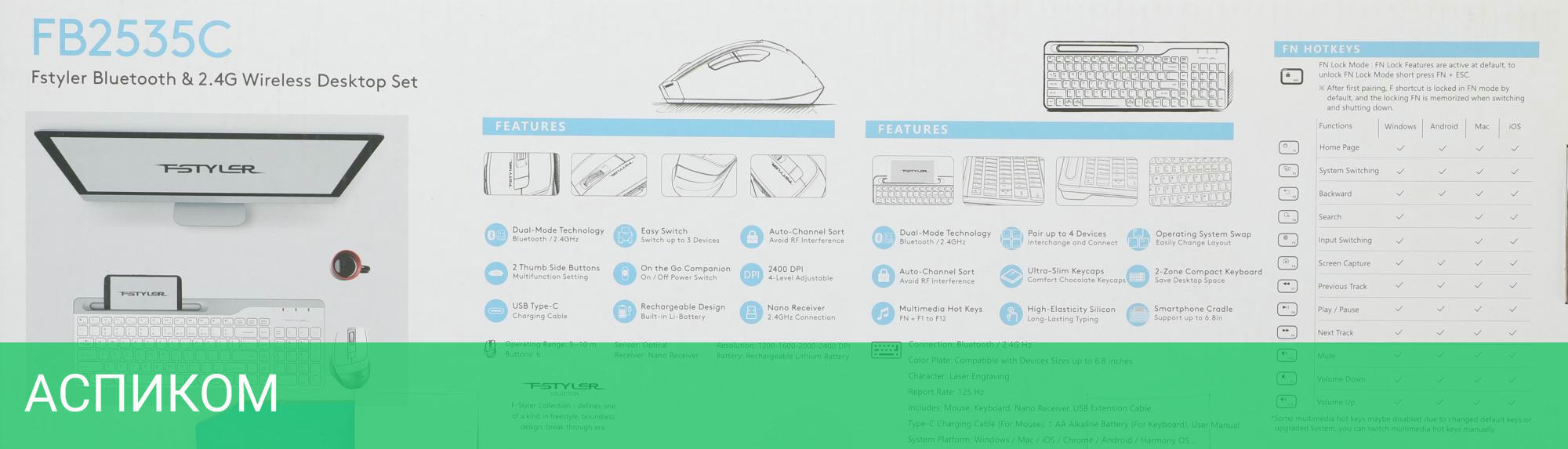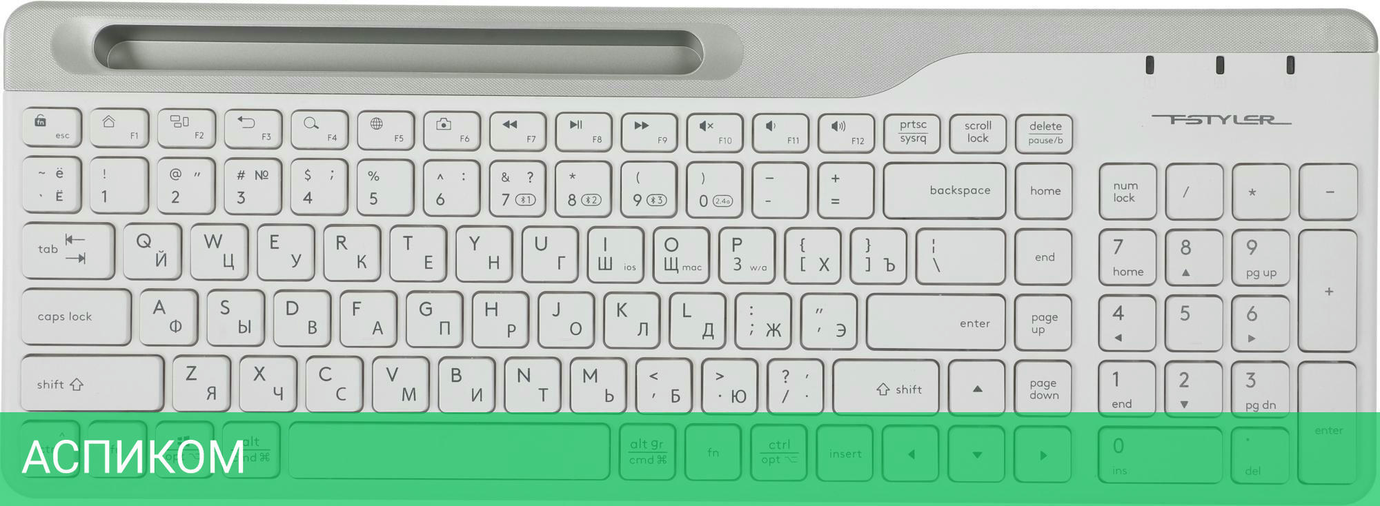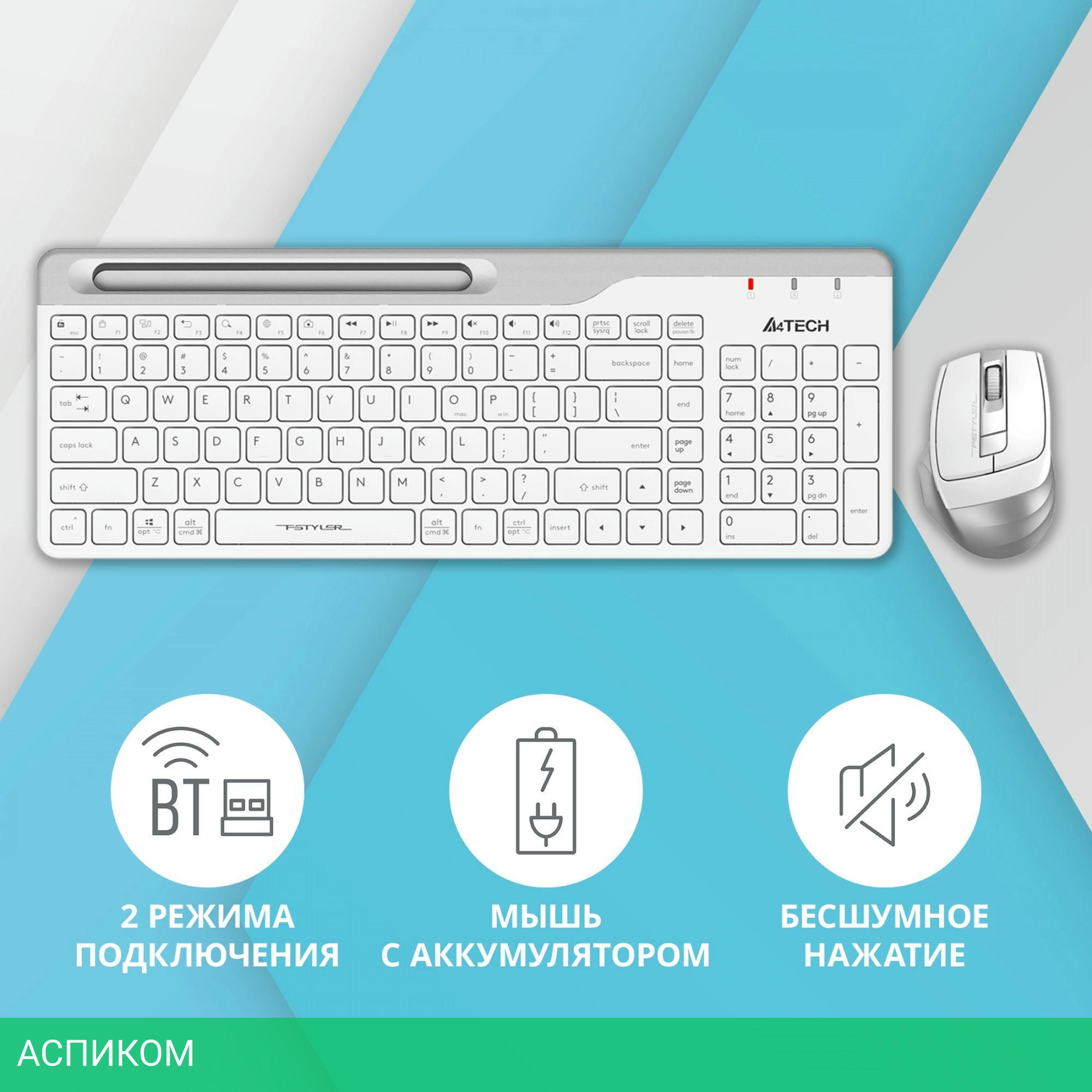 клавиатура + мышь / беспроводная радио / беспроводная радио/Bluetooth / оптический / белый / 2400.0 / островная / нет / 6