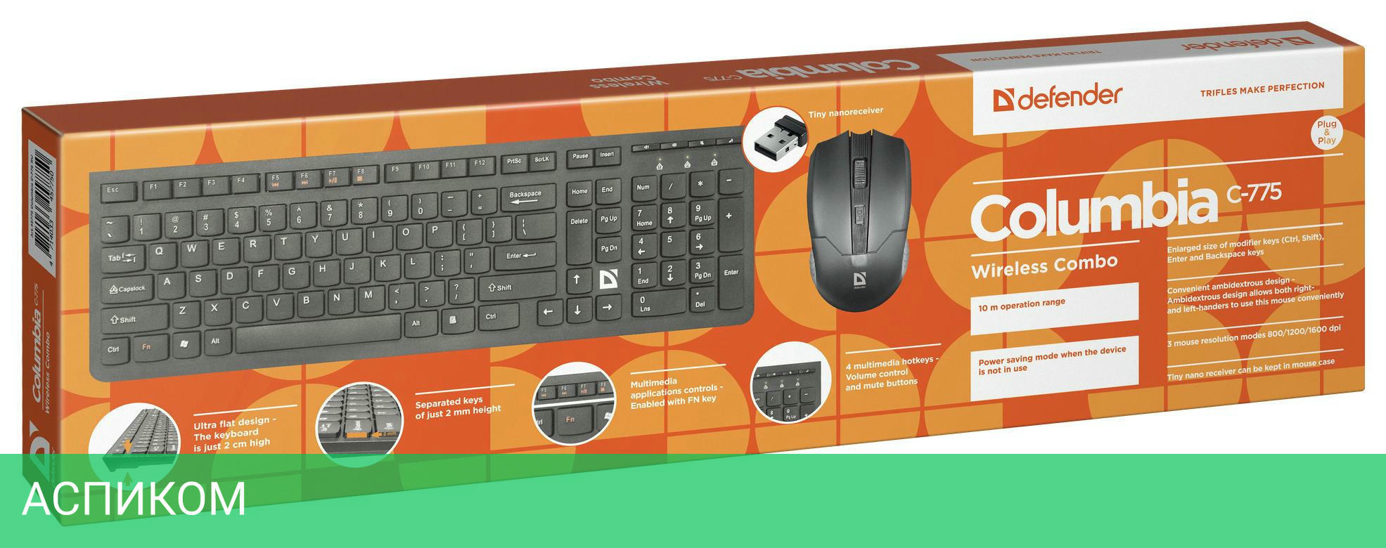 клавиатура + мышь / черный / беспроводная радио / радио / оптический / 1600.0 / островная / нет / 4