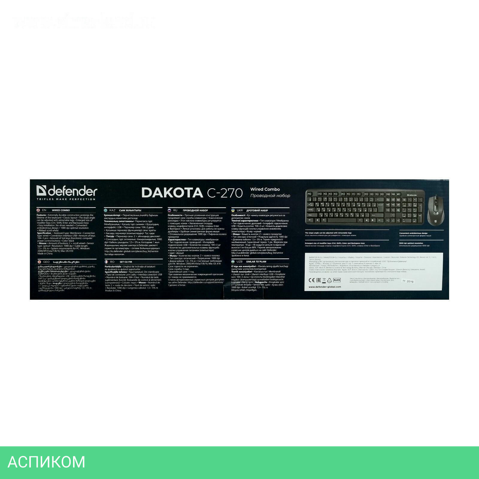 клавиатура + мышь / черный / проводная USB / проводная USB / оптический / 1000.0 / классическая / нет / 3