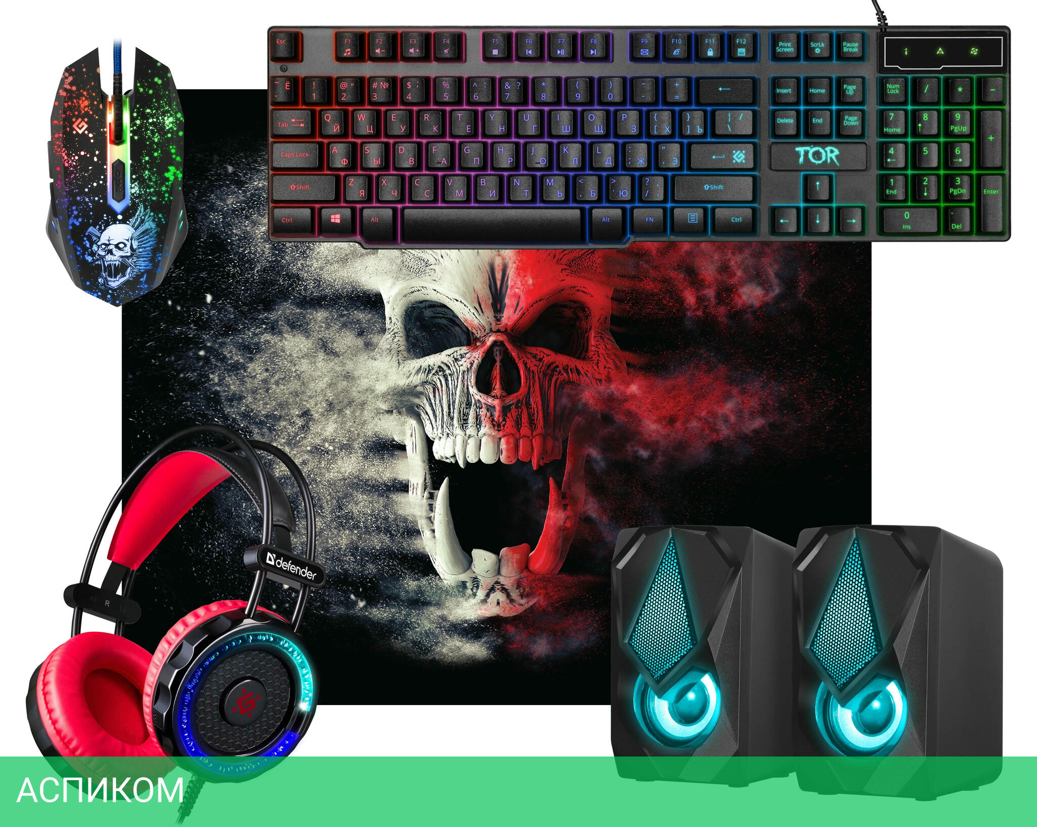 клавиатура + мышь с ковриком + наушники + колонки / черный / проводная USB / проводная USB / оптический / 3200.0 / классическая / да / 6