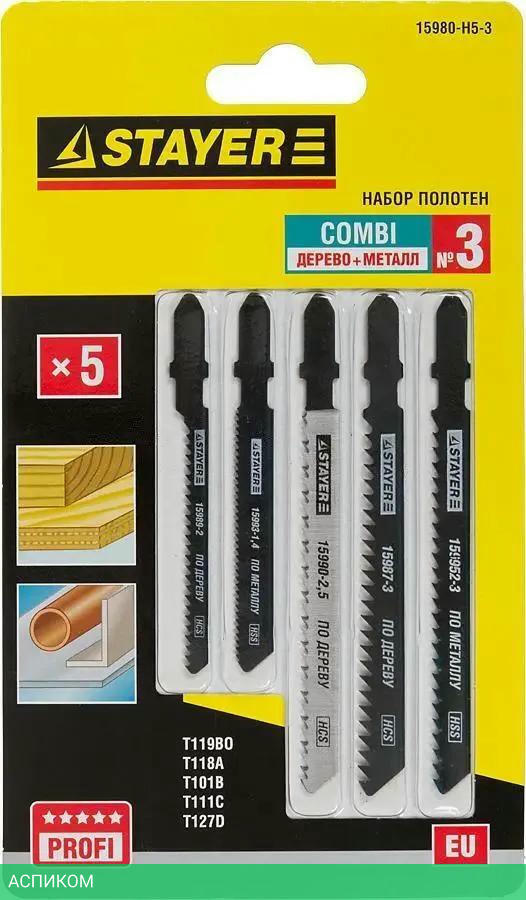 Универсальный набор из пяти пилок по дереву, металлу и пластику: t111c, t119b, t101b, t118f, t127d.