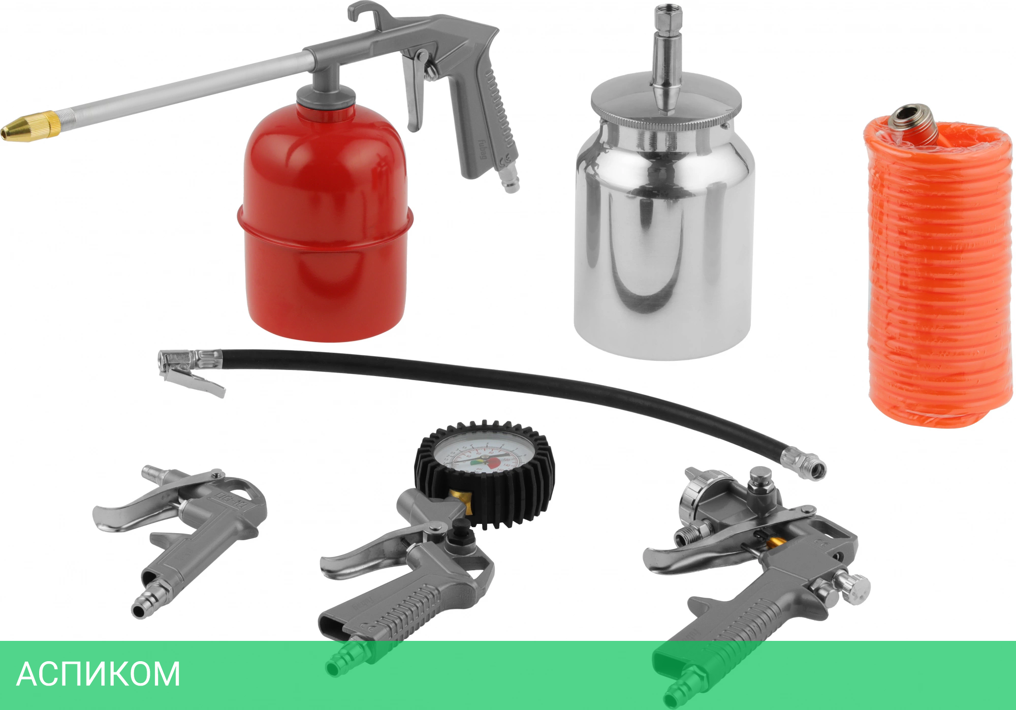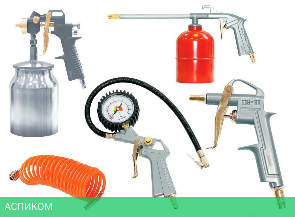 шланг (5 м), краскопульт, продувочный пистолет, пистолет моющий, пистолет для накачки шин