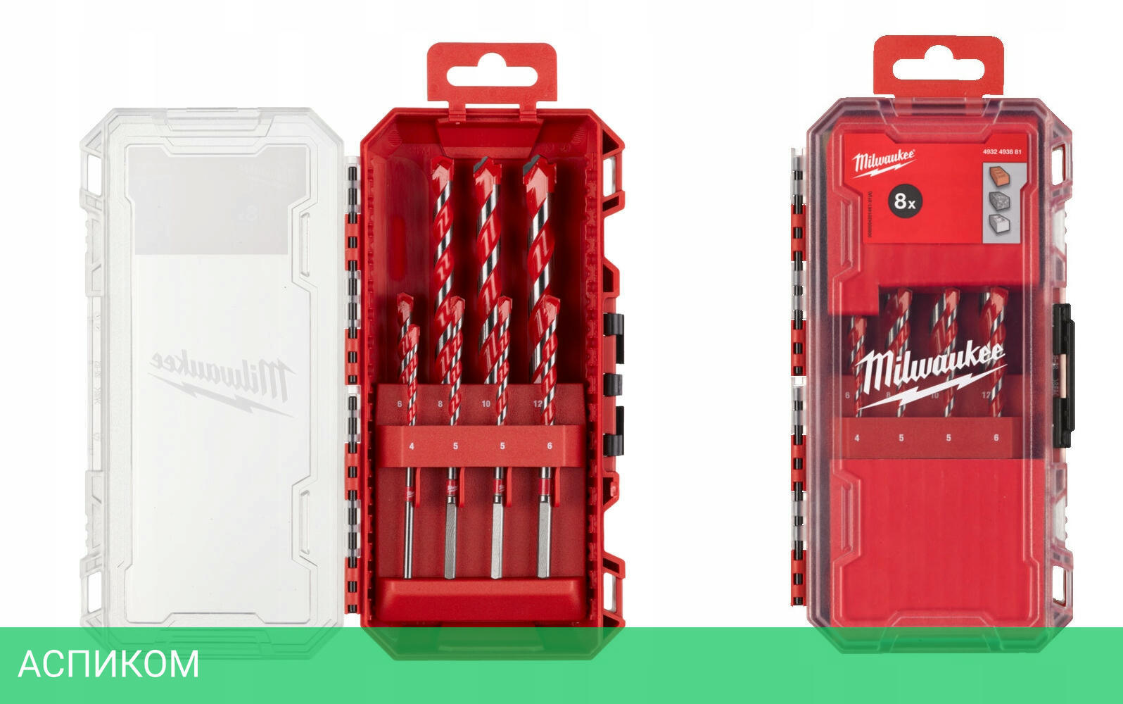 набор сверл - 8шт.(диаметр: 4/5/6/8/10/12 мм), кейс, упаковка