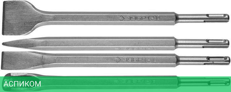 Пикообразное зубило - 1 шт.: 250 ммПлоское - 1 шт.: 20x250 ммПлоское широкое - 1 шт.: 40x250 ммКанальное - 1 шт.: 22x050 мм