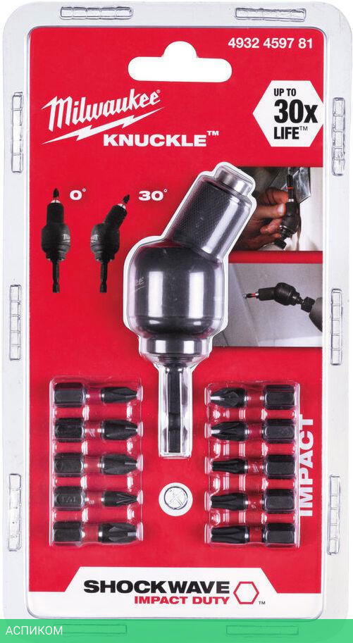 Milwaukee 1 угловая насадка KNUCKLE™, 1 x PH1 / 2 x PH2, 1 x PZ1 / 2 x PZ2 / 1 x PZ3, 1 x TX15 / 1 x TX20 / 1 x TX25