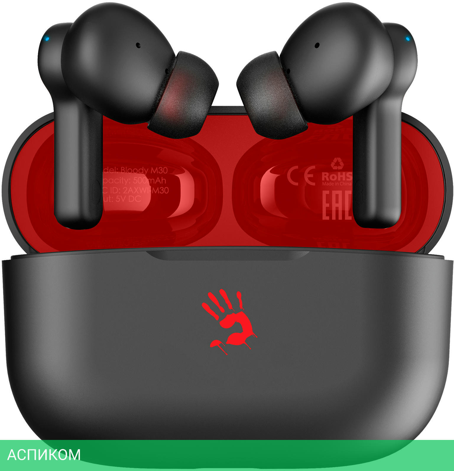 наушники с микрофоном / внутриканальные / да / внутри уха / черный; красный / закрытые / полностью беспроводные (TWS) / Bluetooth / 20.0 / 20000.0 / пластик / силикон / нет / 4.0 / 22.0